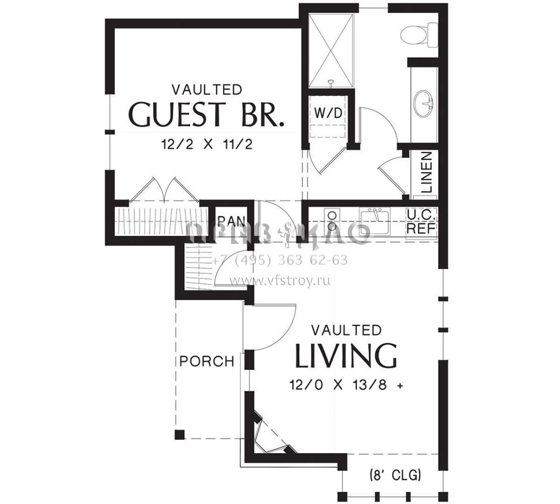 S5-51 (2559-00684) Это иностранный проект, для которого требуется адаптация под нормы, действующие в Российской Федерации. Вы видите проект дома в английском стиле. В этом доме сочетаются черты сельской постройки и аскетичность лофта. Внутри жильцы смогут проводить время с максимальным комфортом. Обратим внимание, что сейчас на планировках все размеры представлены в футах. Для перевода в метры вам необходимо значение в футах умножить на 0,3048.
