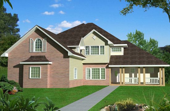 Проект двухэтажного дома с гаражом на три и более машин в стиле Ранчо S5-515 (039-00682)