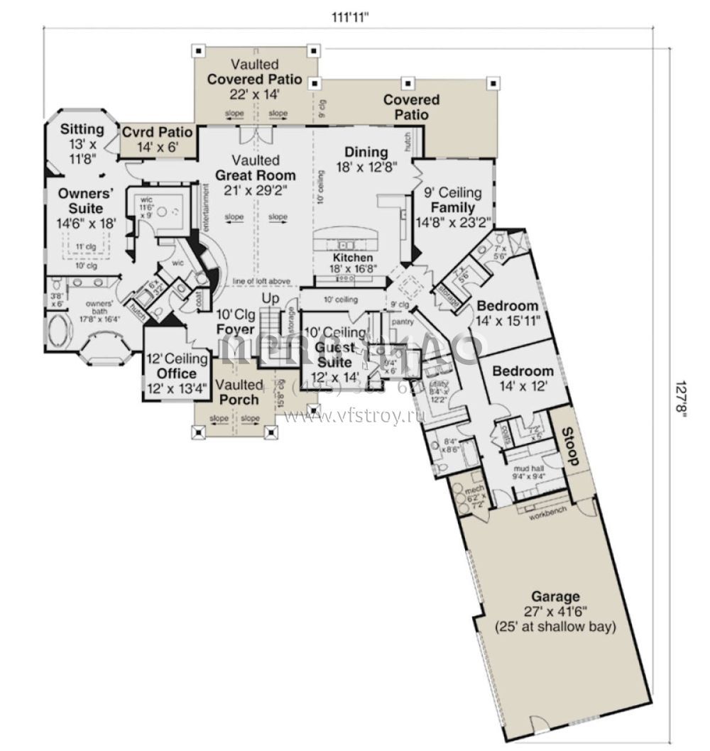 Поскольку этот проект разрабатывался иностранными архитекторами, для строительства дома требуется переработка проекта под действующие в России нормы. Данные визуализации проекта представлены для ознакомления с концепцией проекта. Проект разработан американским архитектурным бюро и представлен America's Best House Plans.
