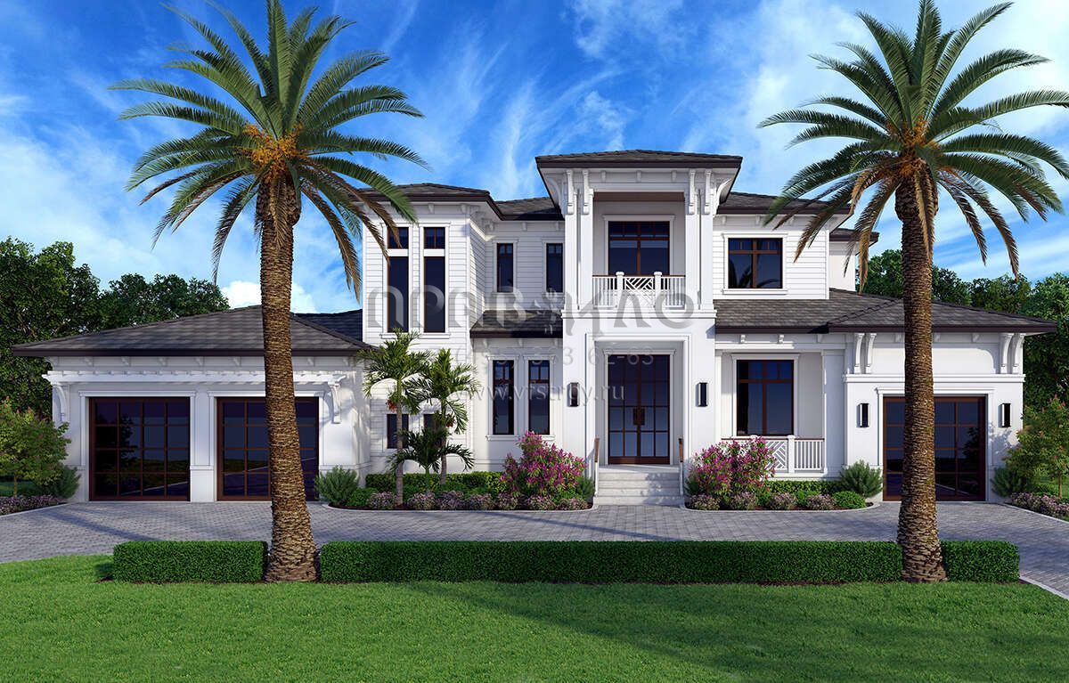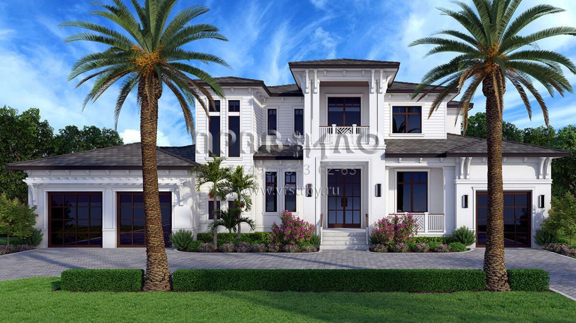 Проект двухэтажного дома с гаражом на три и более машин в прибрежном стиле S5-517 (207-00130)