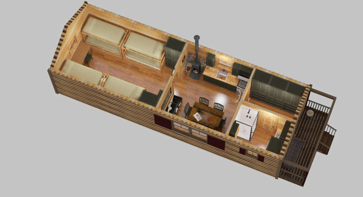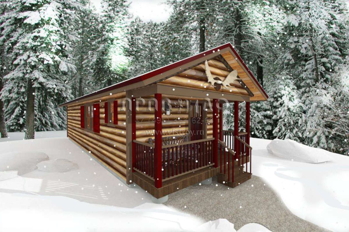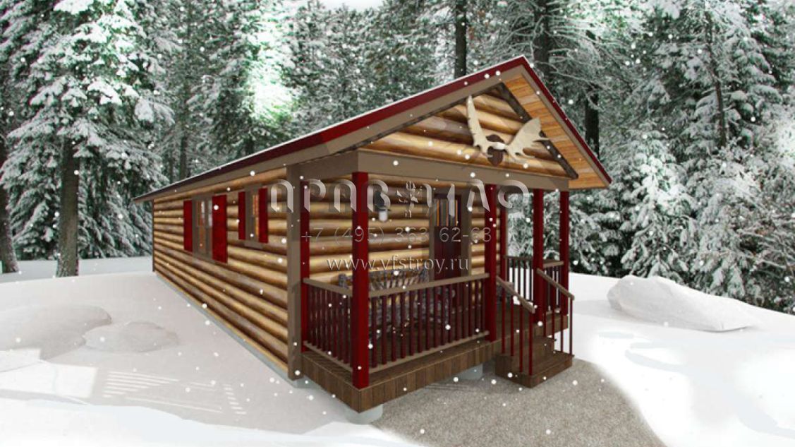 Это проект одноэтажного дома без гаража жилой площадью 52 кв.м. Длина дома 13.4 м, ширина 4 м, высота 3.7 м. В доме одна спальня и один санузел.