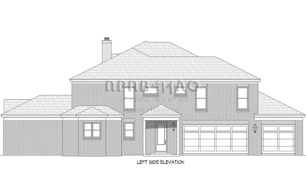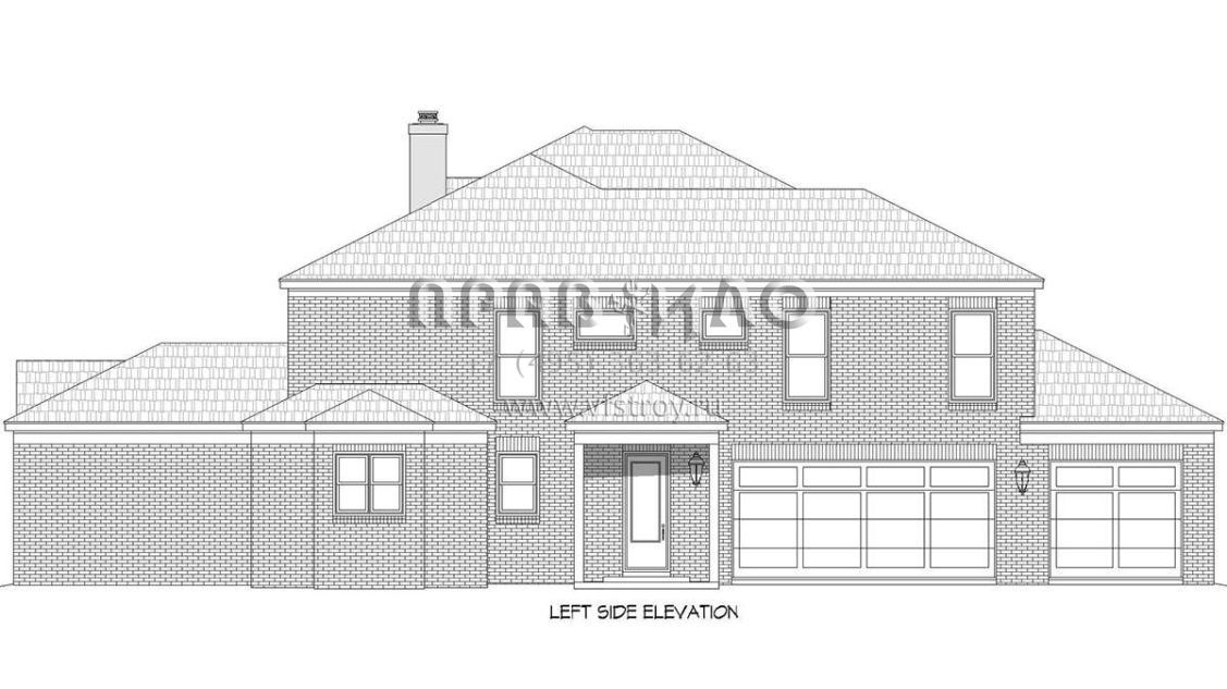 Это проект двухэтажного дома с гаражом на три и более машин жилой площадью 522 кв.м. Длина дома 25 м, ширина 21.6 м, высота 9.1 м. В доме шесть и более спален и пять санузлов.