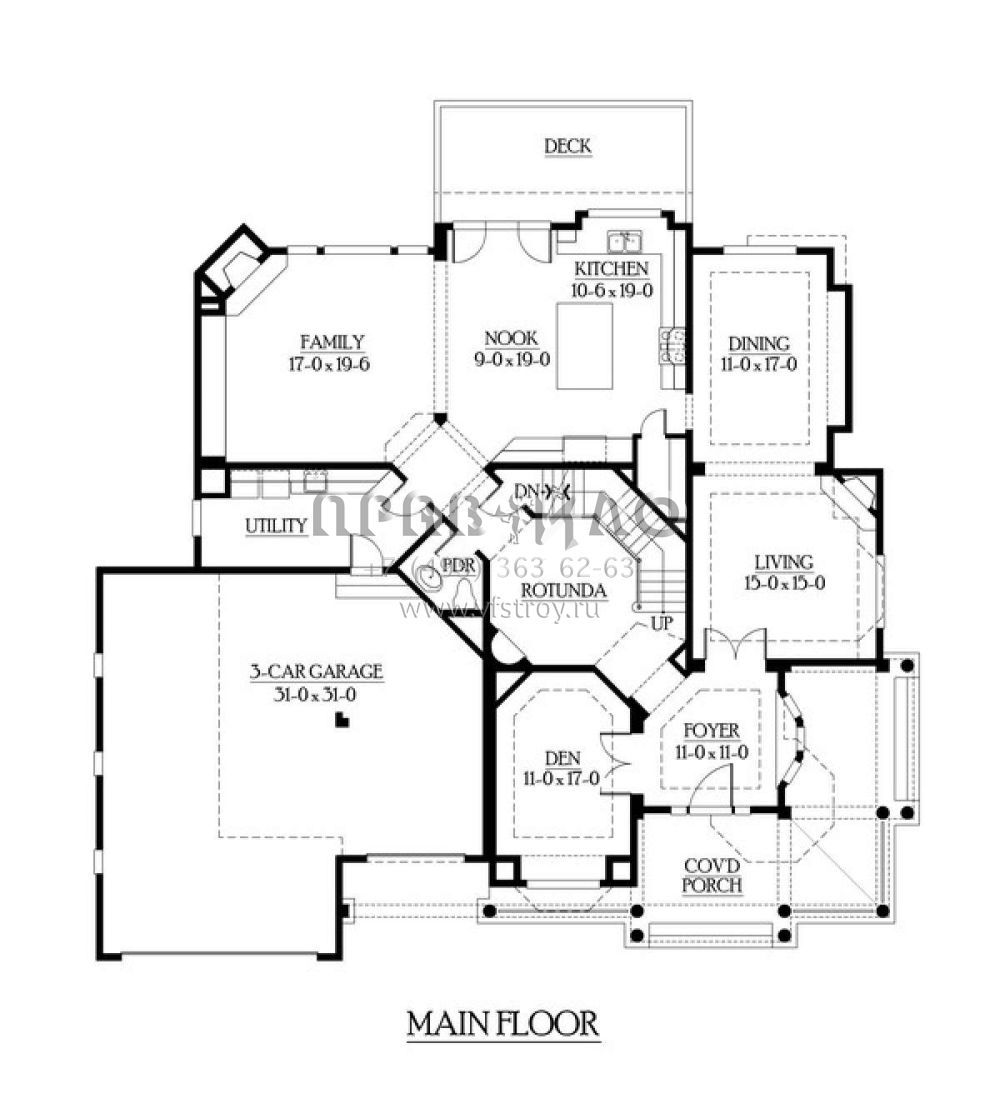 Проект двухэтажного дома с гаражом на три и более машин в английском стиле S5-528 (341-00242)