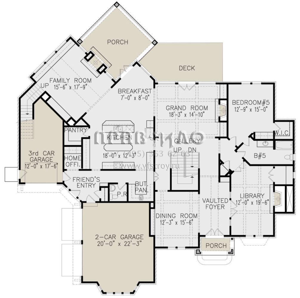 Проект двухэтажного дома с гаражом на три и более машин в английском стиле S5-528 (699-00146)