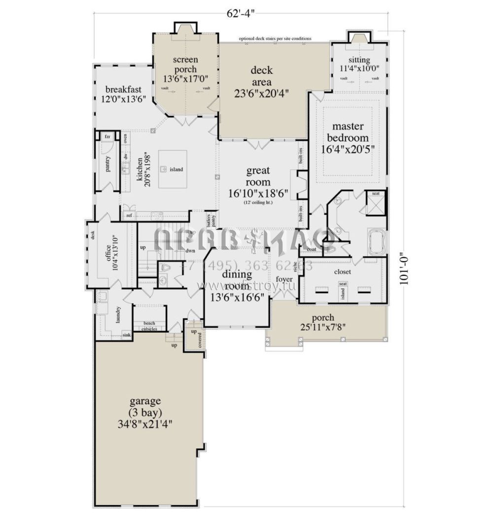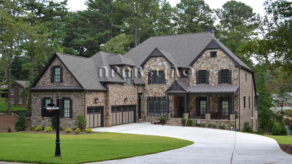 Проект двухэтажного дома с гаражом на три и более машин в стиле Ранчо S5-528 (957-00084)
