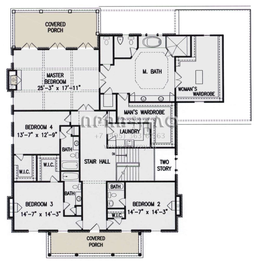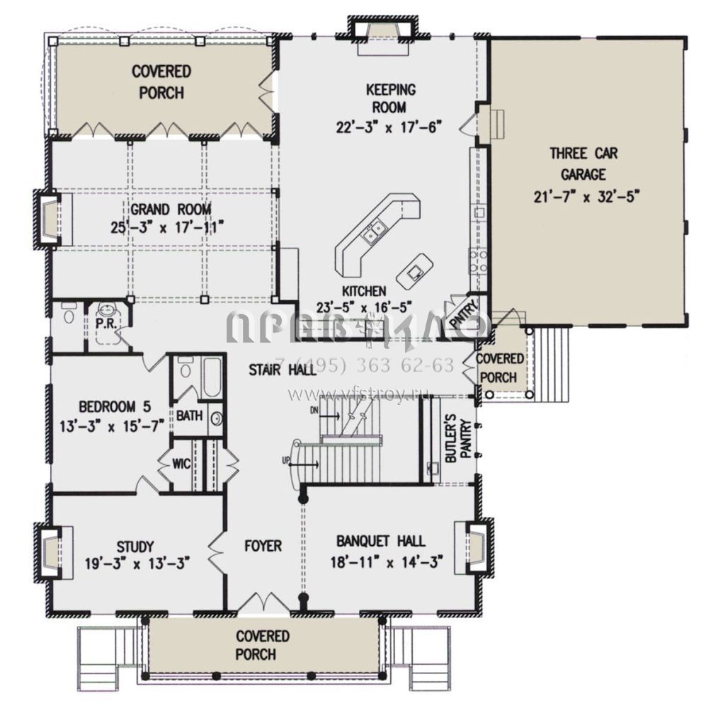 Проект двухэтажного дома с гаражом на три и более машин в стиле Особняк S5-529 (699-00275)