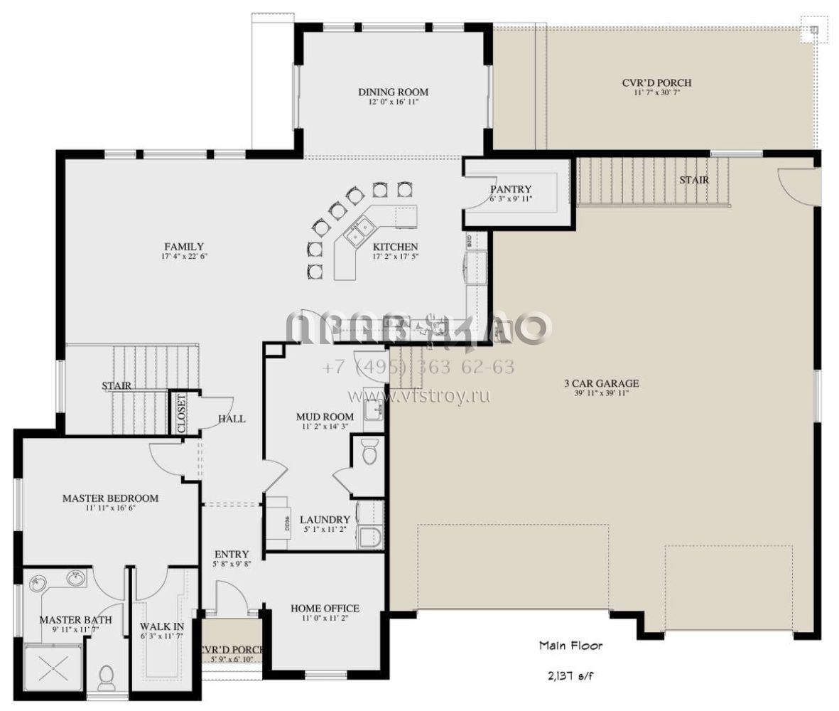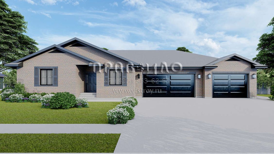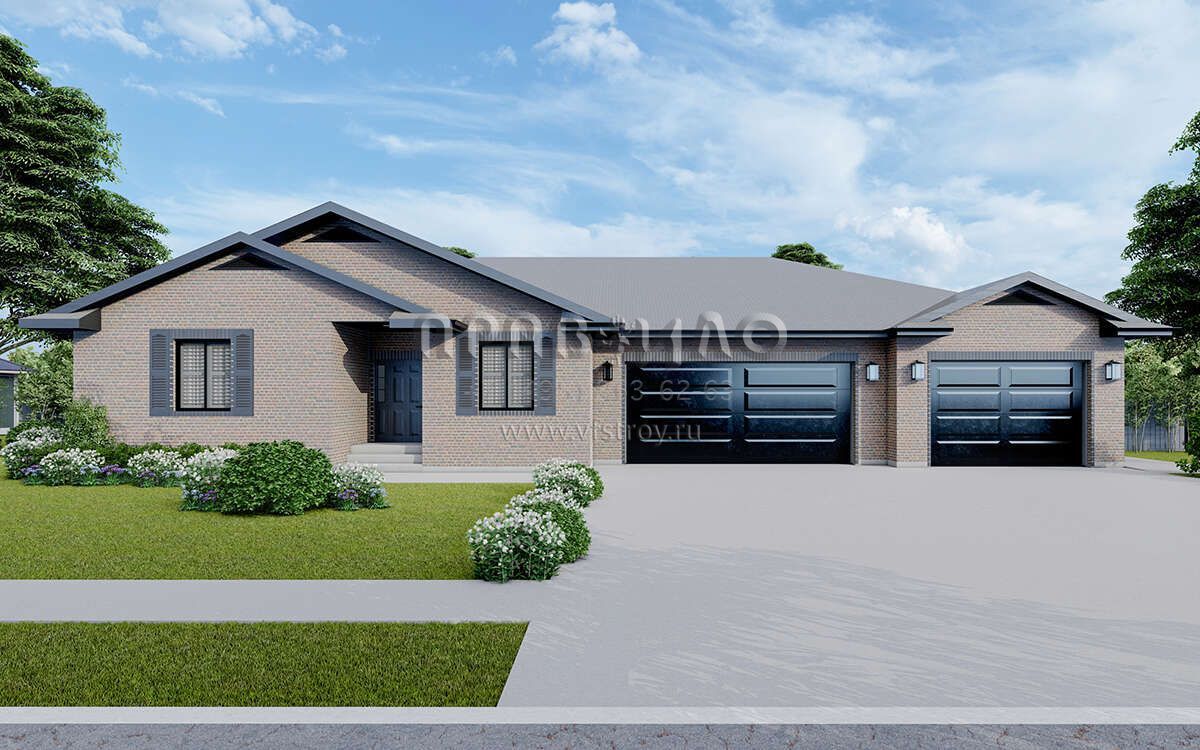 Проект одноэтажного дома с гаражом на три и более машин в стиле Ранчо S5-530 (2802-00260)