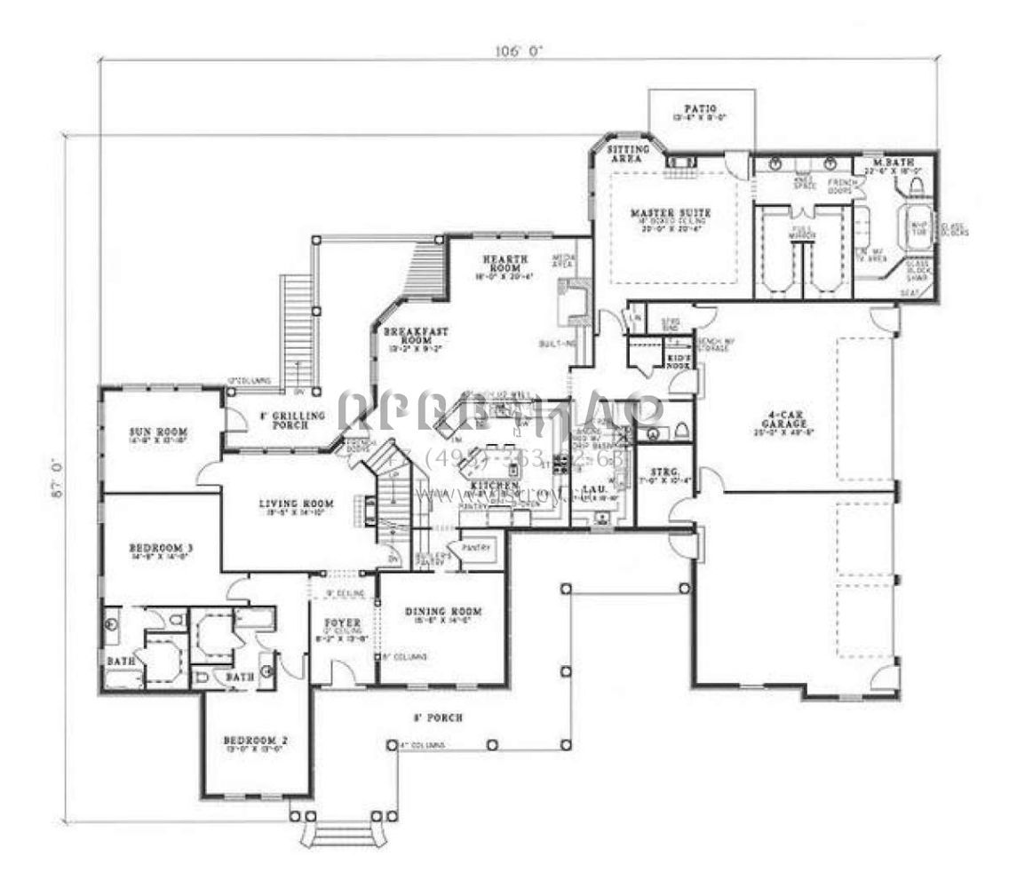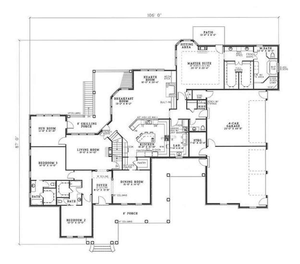 Проект двухэтажного дома с гаражом на три и более машин в английском стиле S5-532 (110-00237)