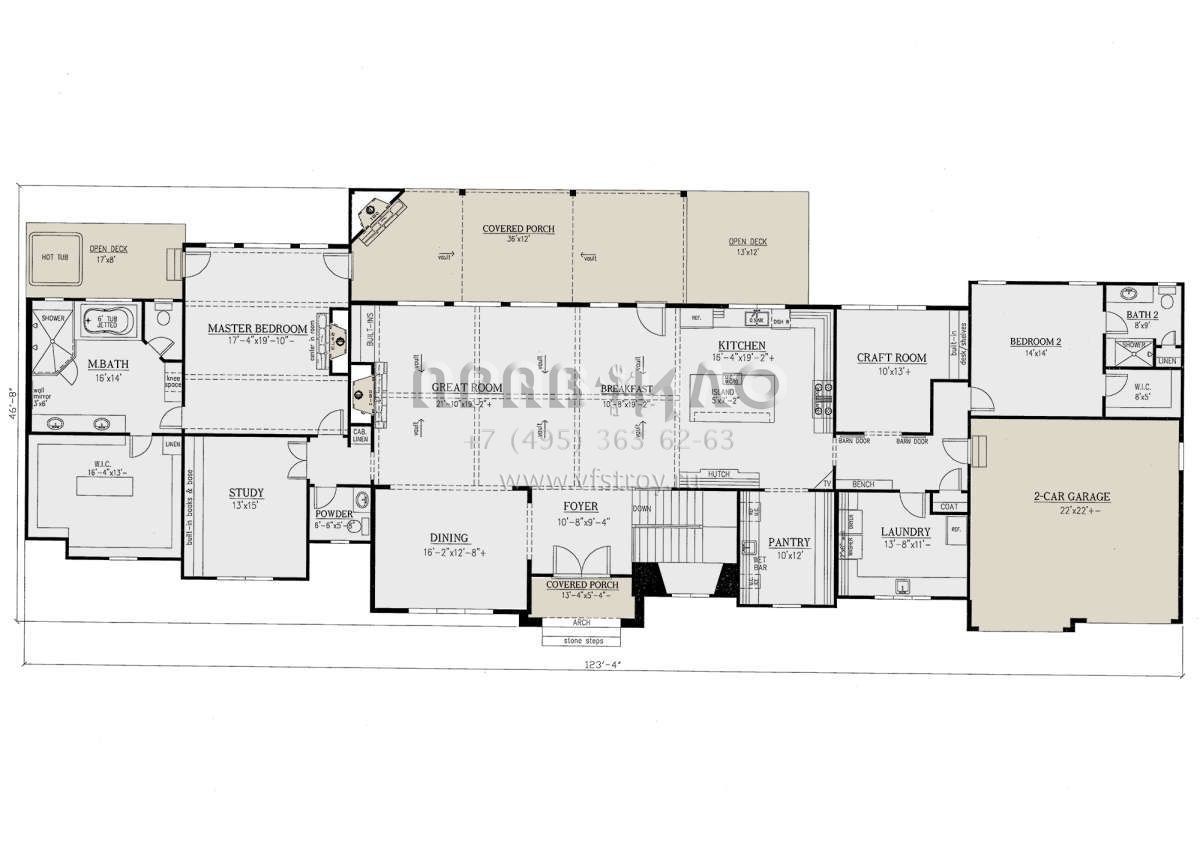 Поскольку этот проект разрабатывался иностранными архитекторами, для строительства дома требуется переработка проекта под действующие в России нормы. Данные визуализации проекта представлены для ознакомления с концепцией проекта. Проект разработан американским архитектурным бюро и представлен America's Best House Plans.