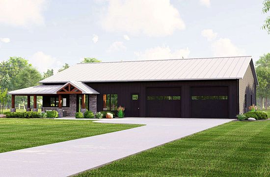Проект одноэтажного дома с гаражом на три и более машин в прибрежном стиле S5-542 (1020-00361)
