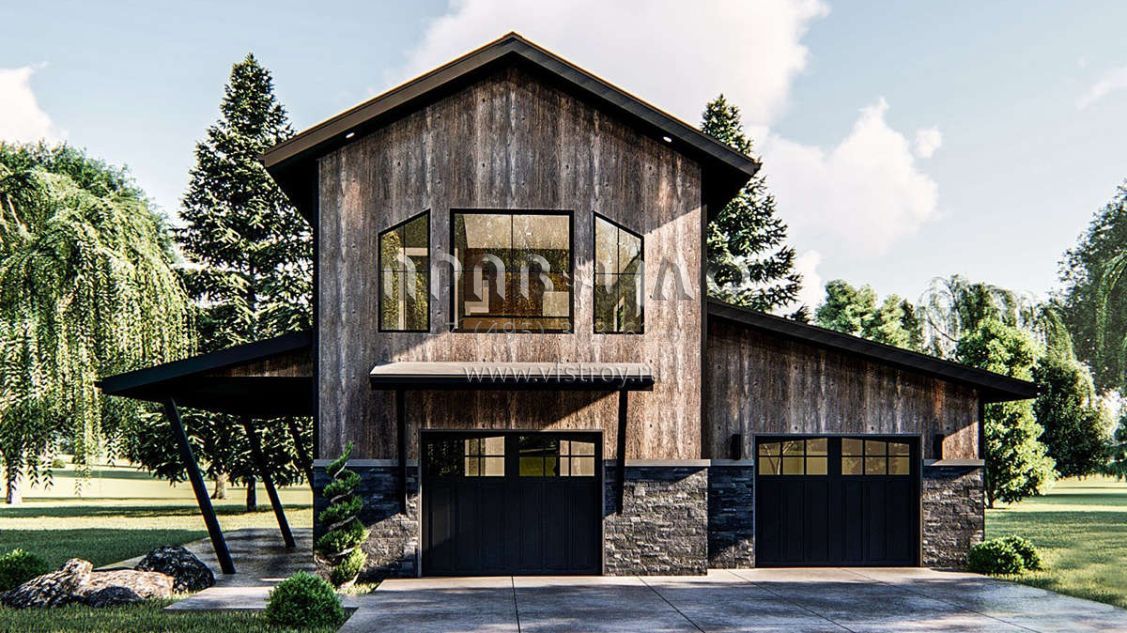 Проект двухэтажного дома с гаражом на две машины в стиле Шале S5-55 (963-00349)
