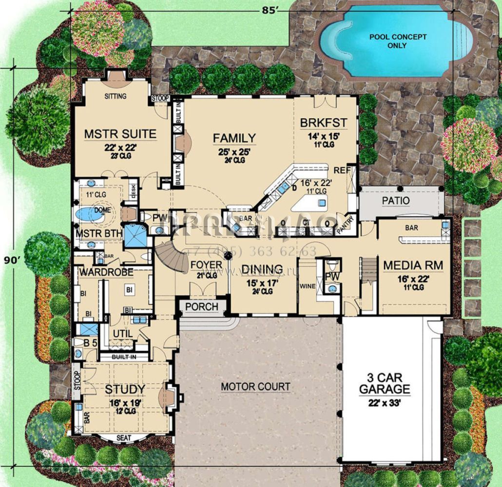 Проект двухэтажного дома с гаражом на три и более машин в прибрежном стиле S5-553 (5445-00317)