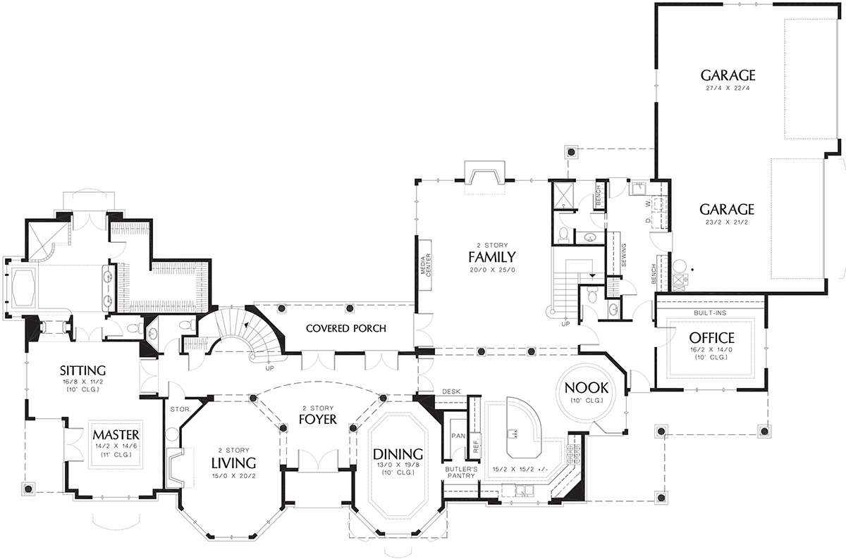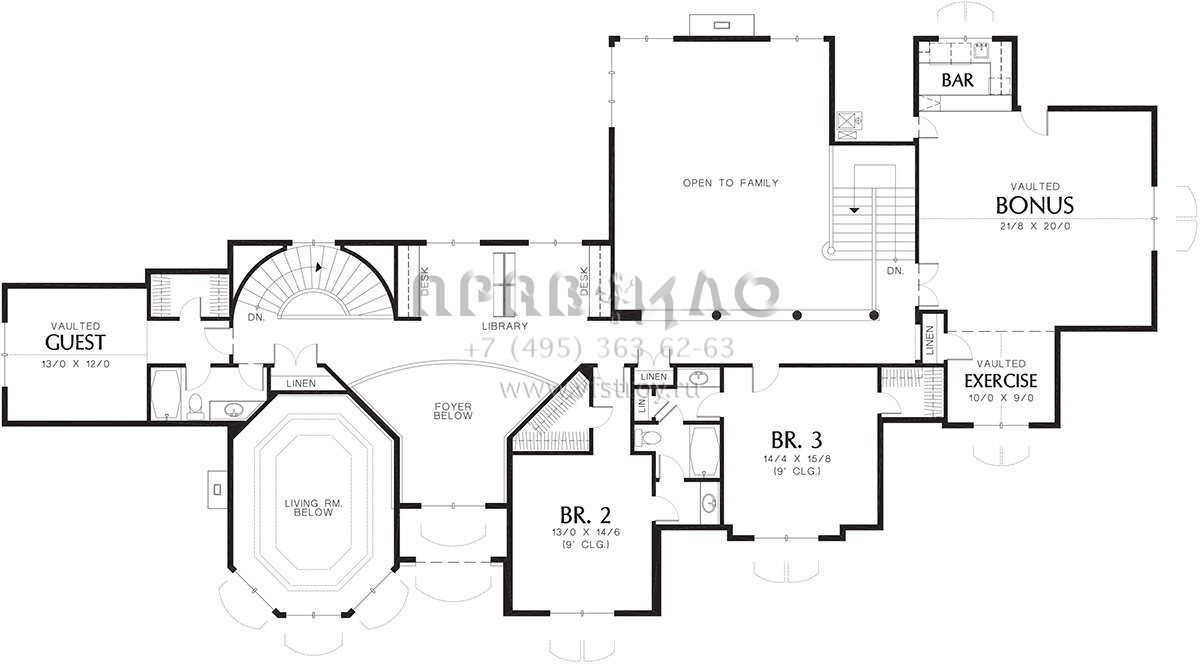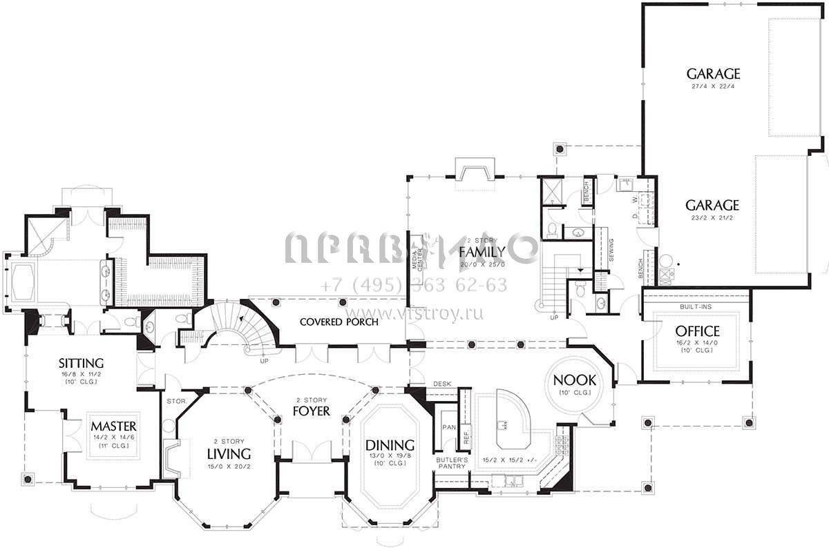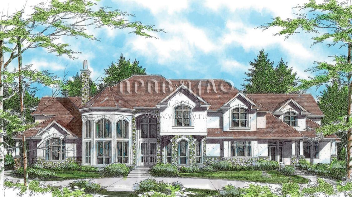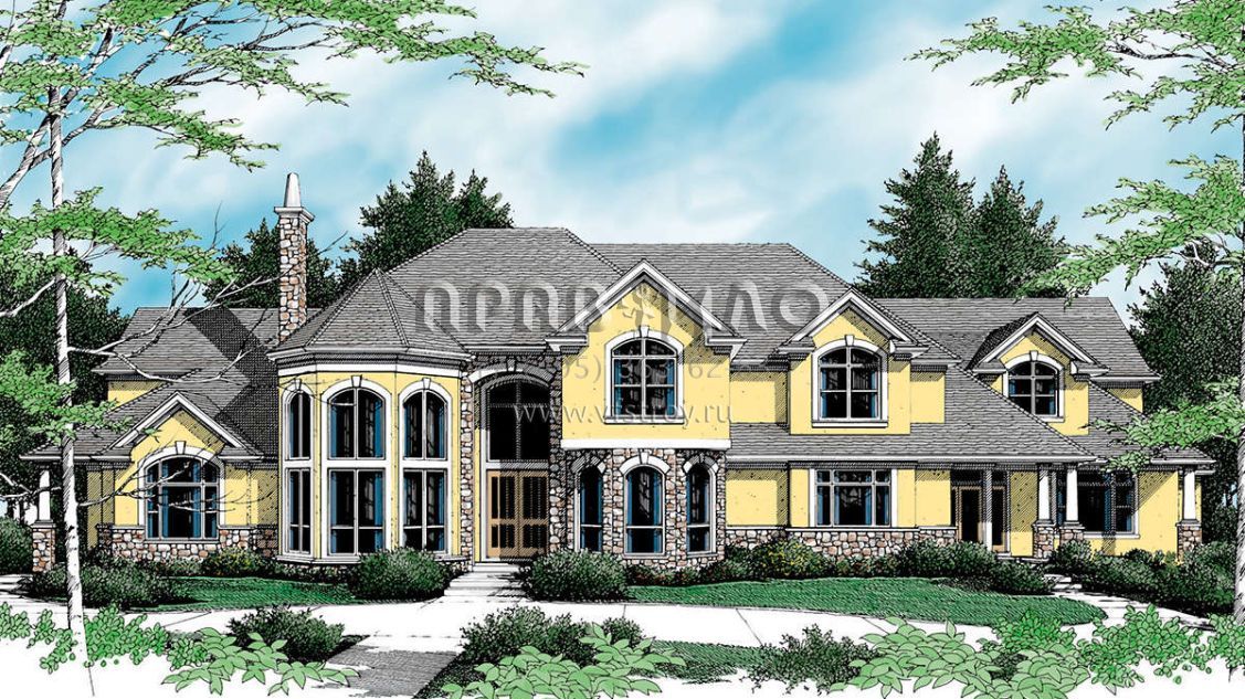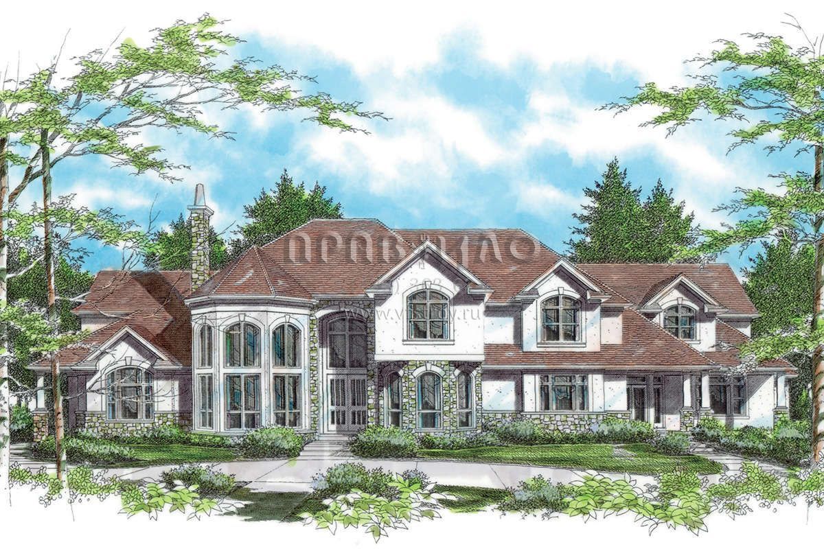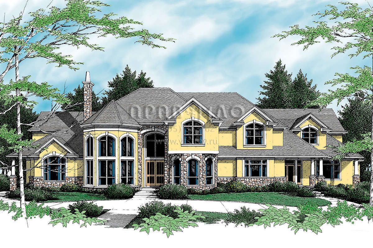 Проект двухэтажного дома с гаражом на три и более машин в стиле Ранчо S5-554 (2559-00574)