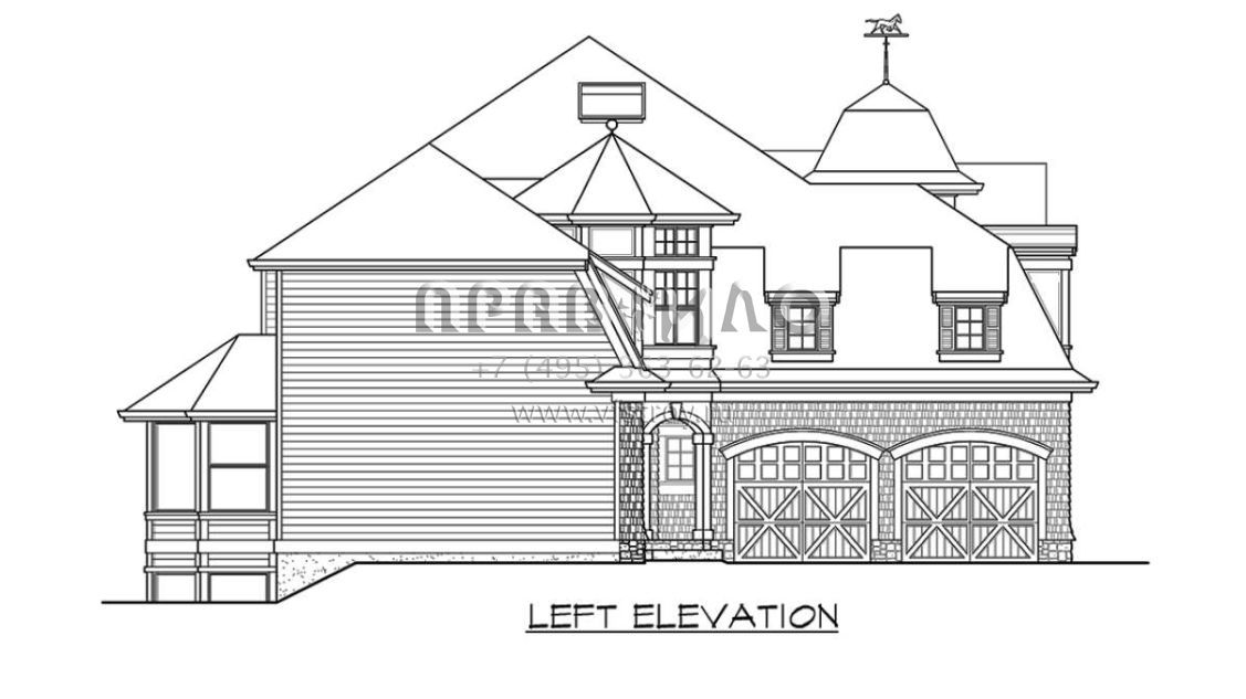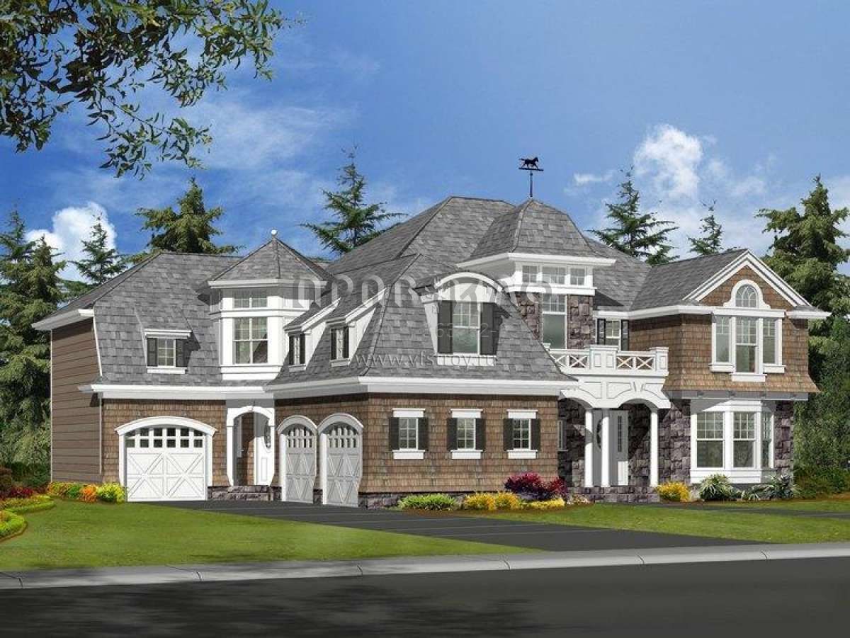 Проект двухэтажного дома с гаражом на три и более машин в стиле Ранчо S5-569 (341-00268)