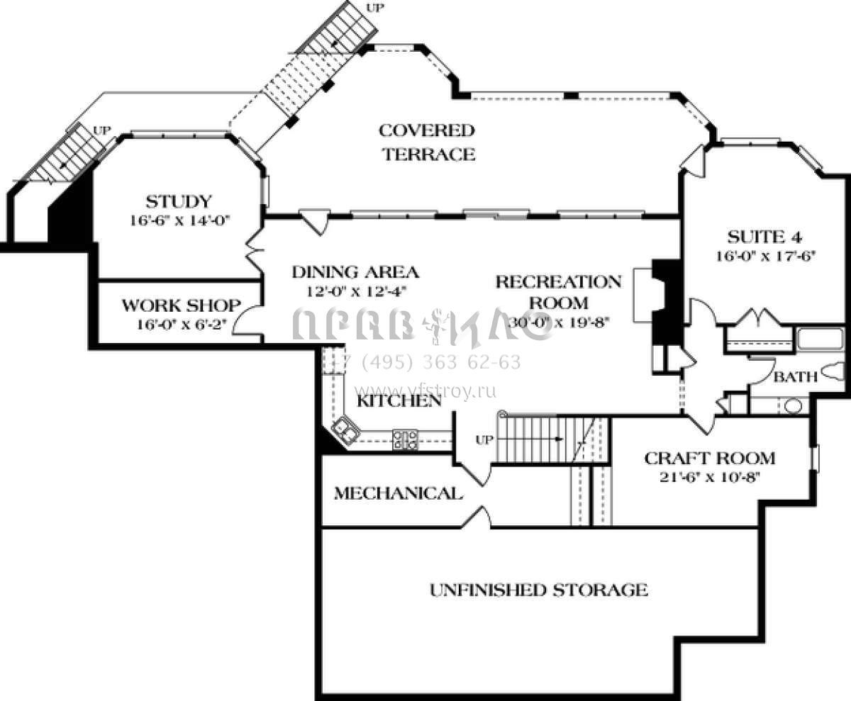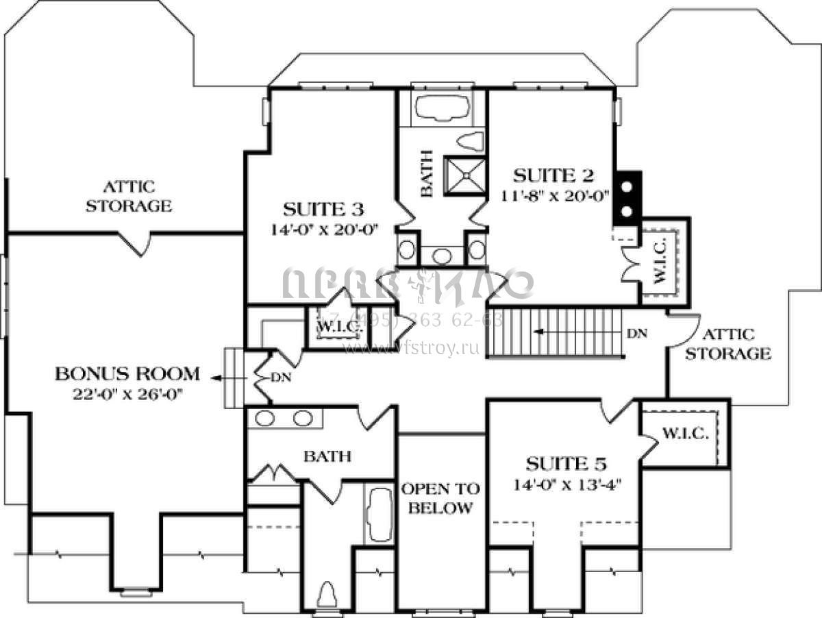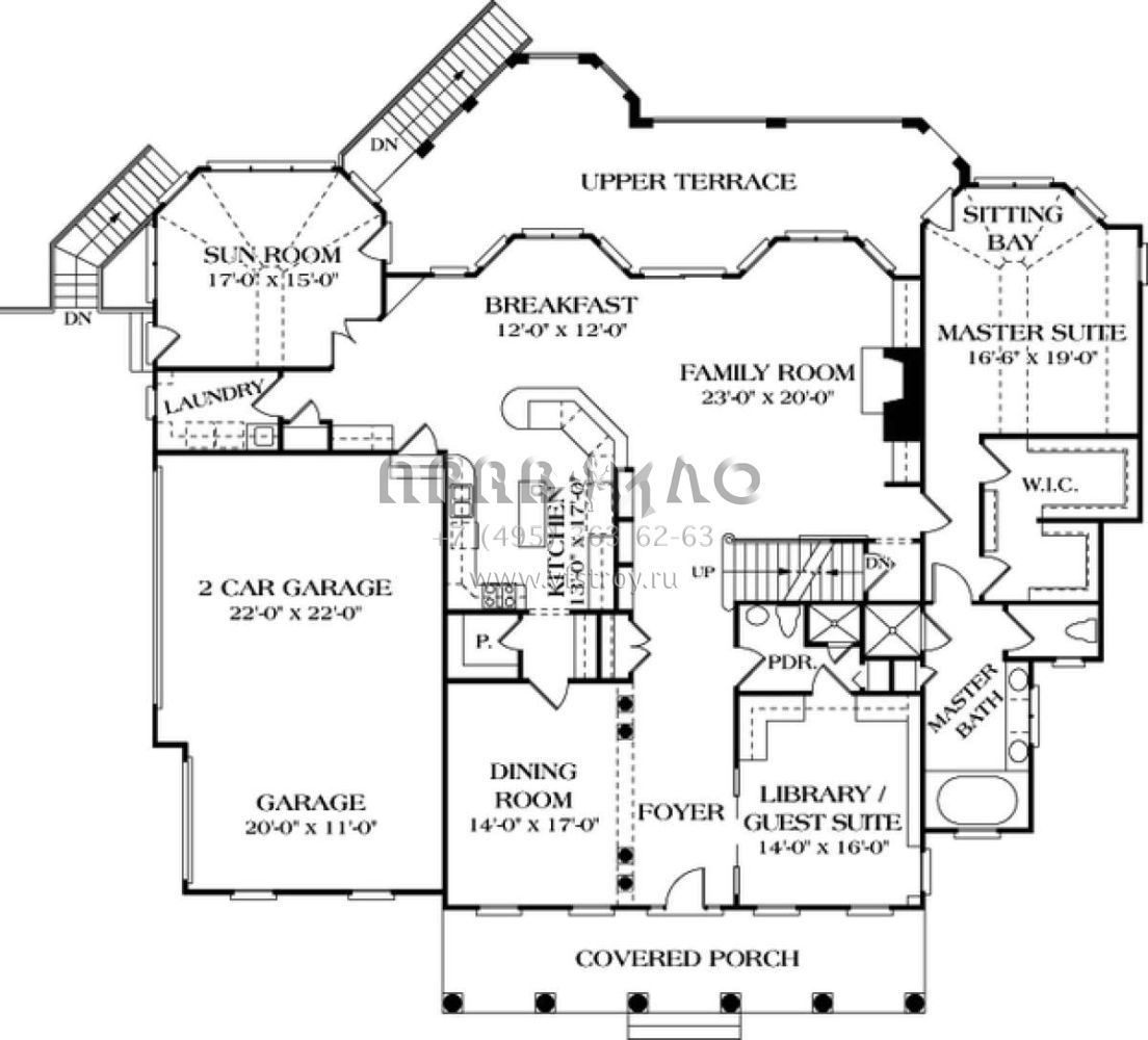 Проект двухэтажного дома с гаражом на три и более машин в стиле Ранчо S5-571 (3323-00436)