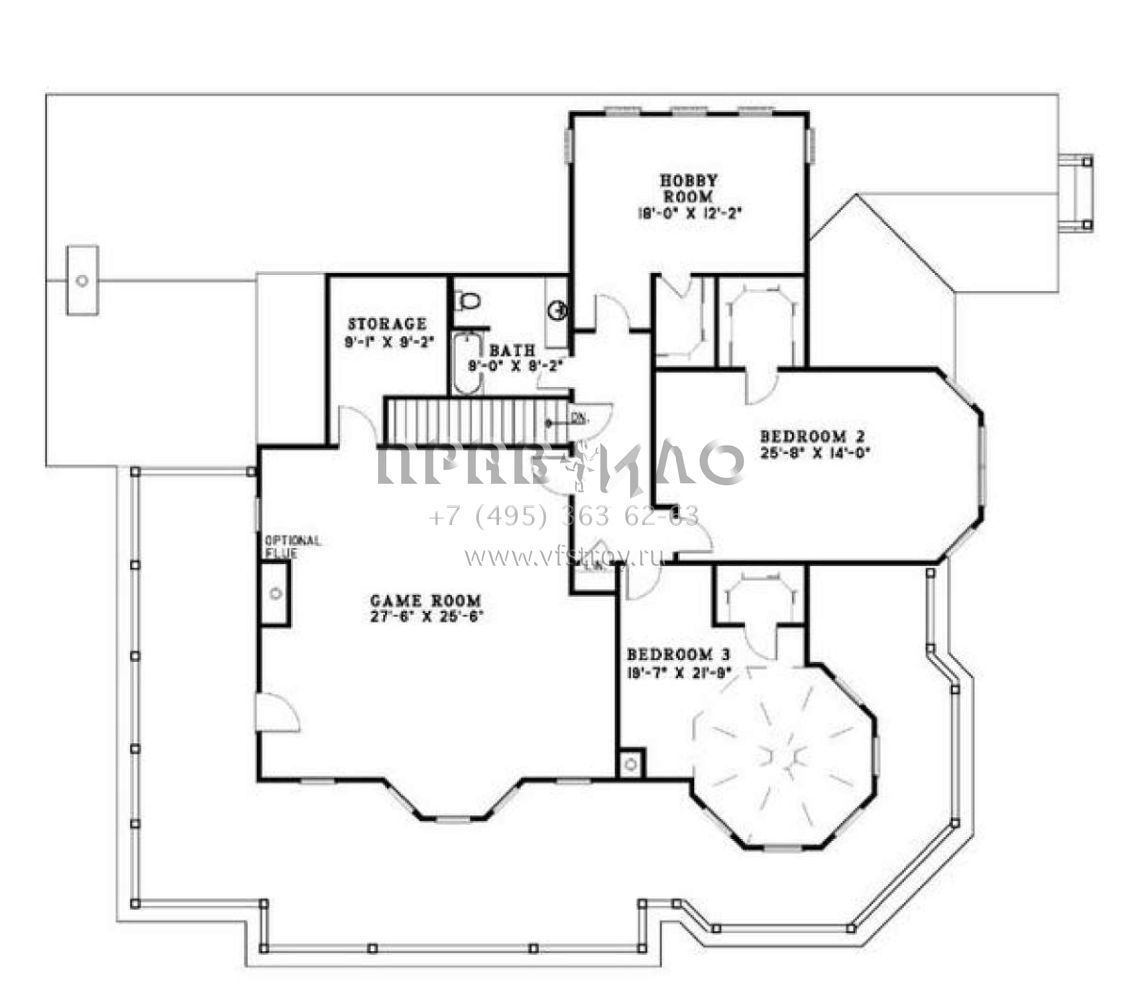 S5-580 (110-00343) Это иностранный проект, для которого требуется адаптация под нормы, действующие в Российской Федерации. Вы видите проект дома в английском стиле. В этом доме сочетаются черты сельской постройки и аскетичность лофта. Внутри жильцы смогут проводить время с максимальным комфортом. Обратим внимание, что сейчас на планировках все размеры представлены в футах. Для перевода в метры вам необходимо значение в футах умножить на 0,3048.