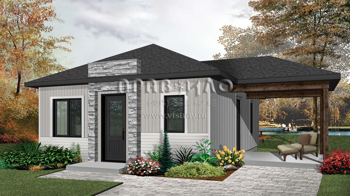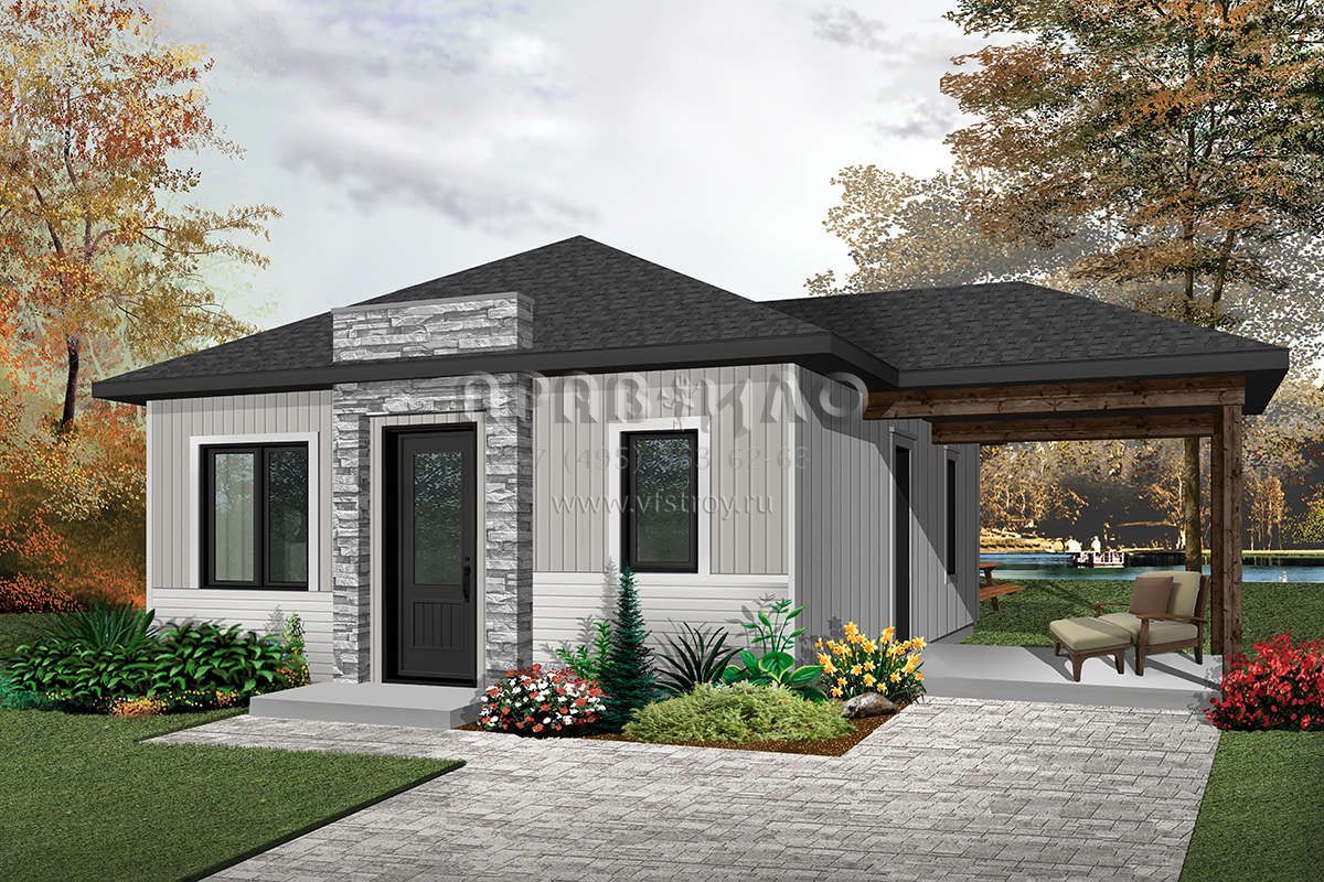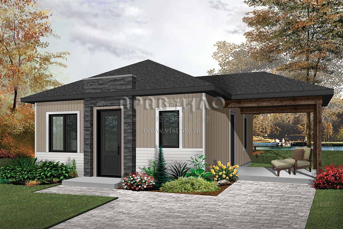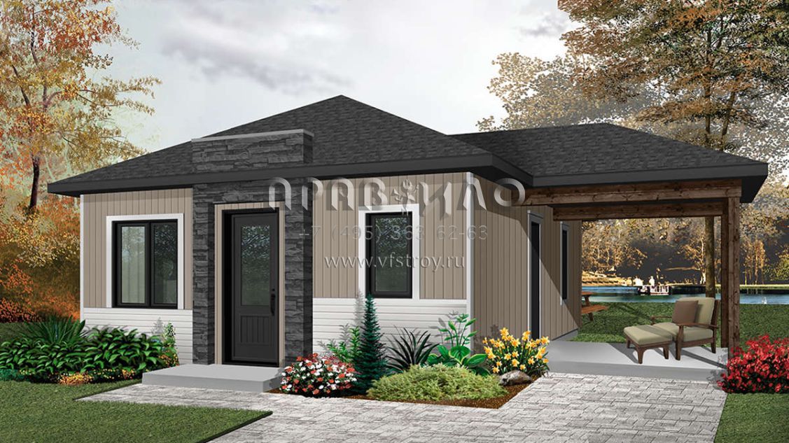 Проект одноэтажного дома с гаражом на одну машину в современном стиле S5-59 (034-01076)