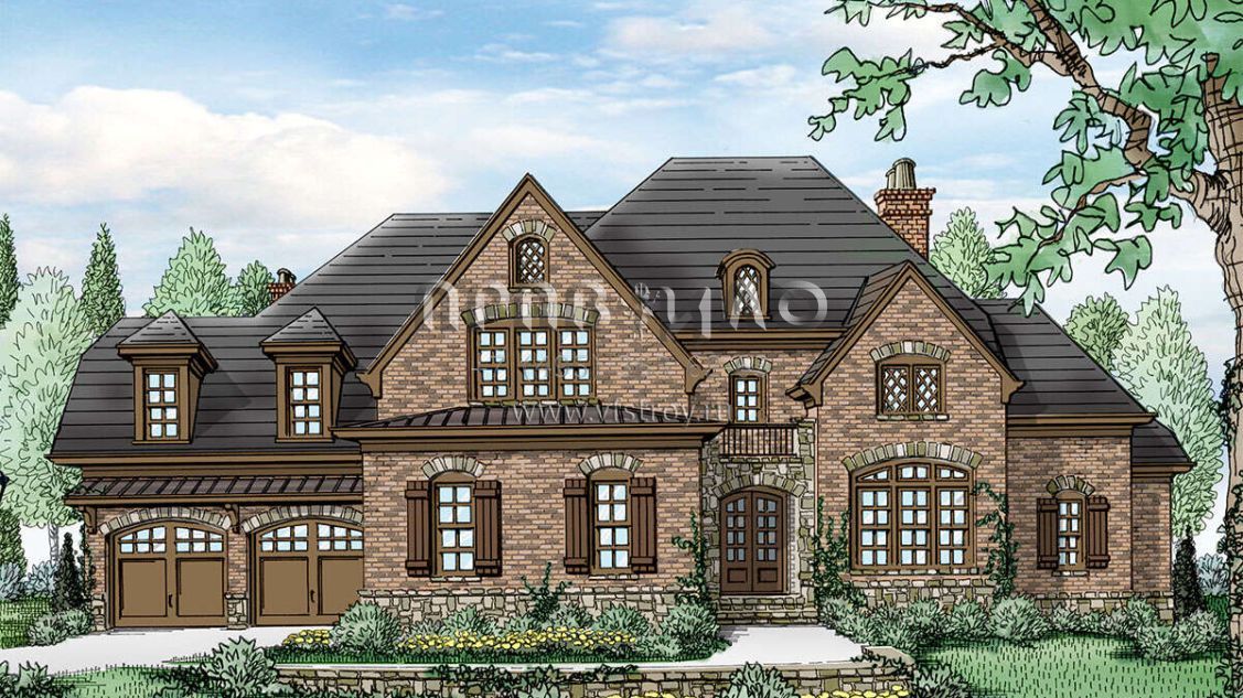 Проект двухэтажного дома с гаражом на три и более машин в английском стиле S5-590 (3418-00014)