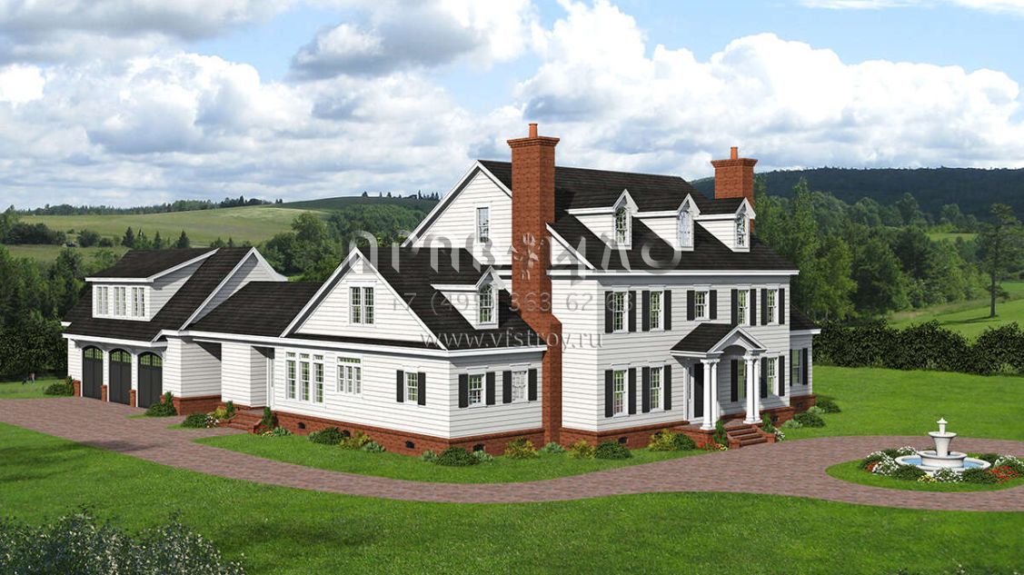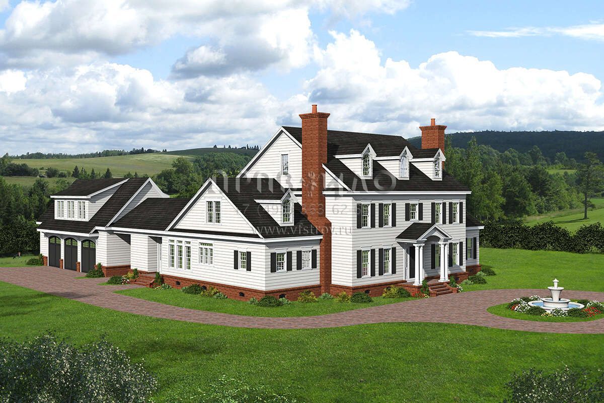 Проект двухэтажного дома с гаражом на три и более машин в стиле Ранчо S5-595 (940-00493)