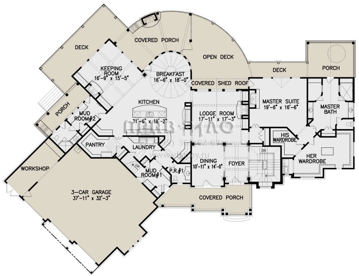 S5-596 (699-00309) Это иностранный проект, для которого требуется адаптация под нормы, действующие в Российской Федерации. Вы видите проект дома в американском стиле. В этом доме сочетаются черты сельской постройки и аскетичность лофта. Внутри жильцы смогут проводить время с максимальным комфортом. Обратим внимание, что сейчас на планировках все размеры представлены в футах. Для перевода в метры вам необходимо значение в футах умножить на 0,3048.