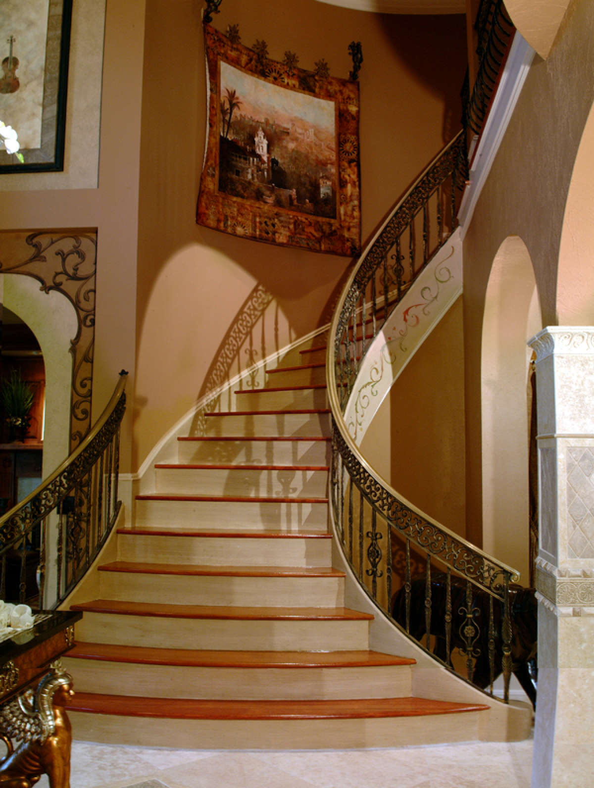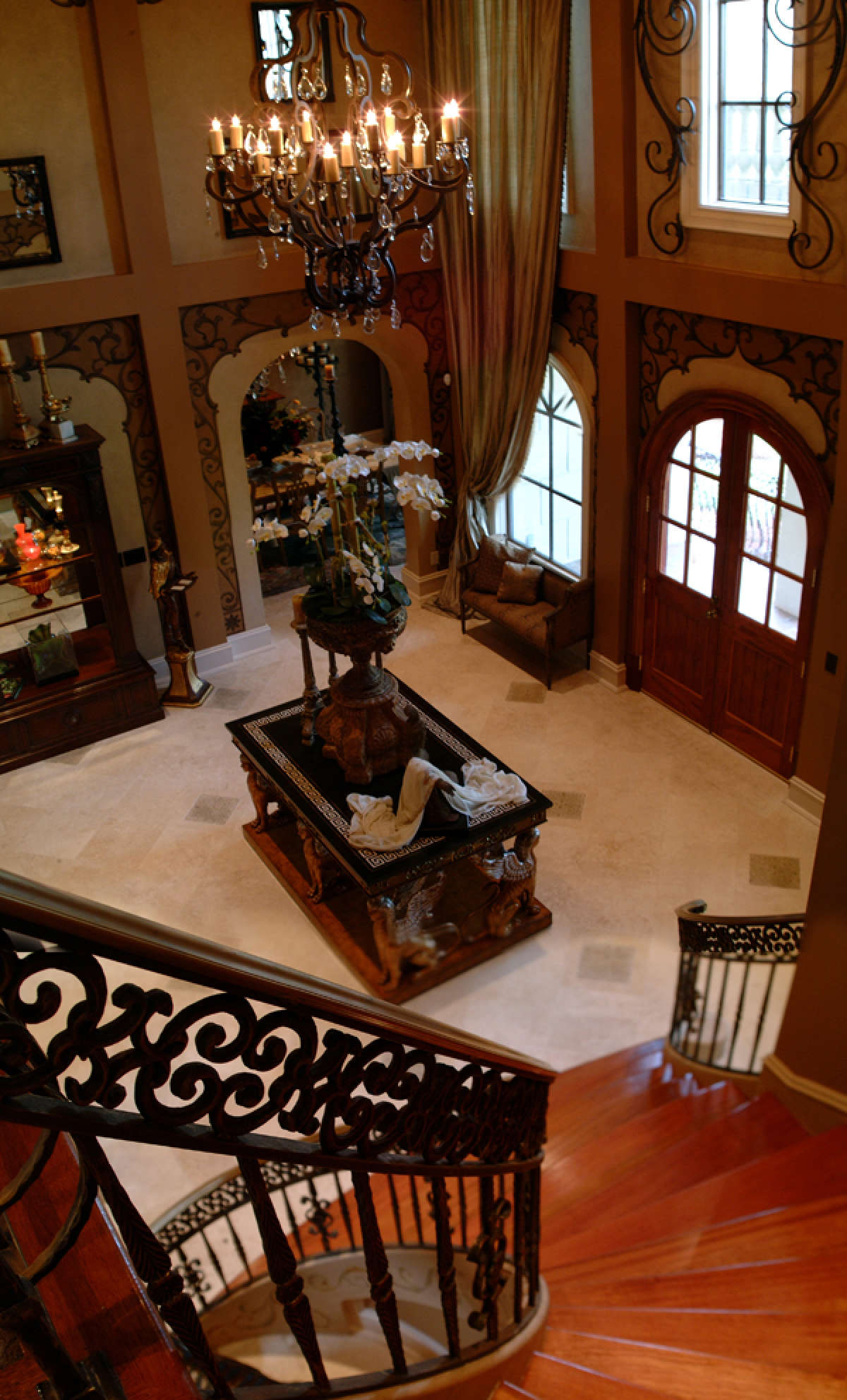 Это проект двухэтажного дома с гаражом на три и более машин жилой площадью 599 кв.м. Длина дома 27.7 м, ширина 29.3 м. В доме пять спален и пять санузлов.