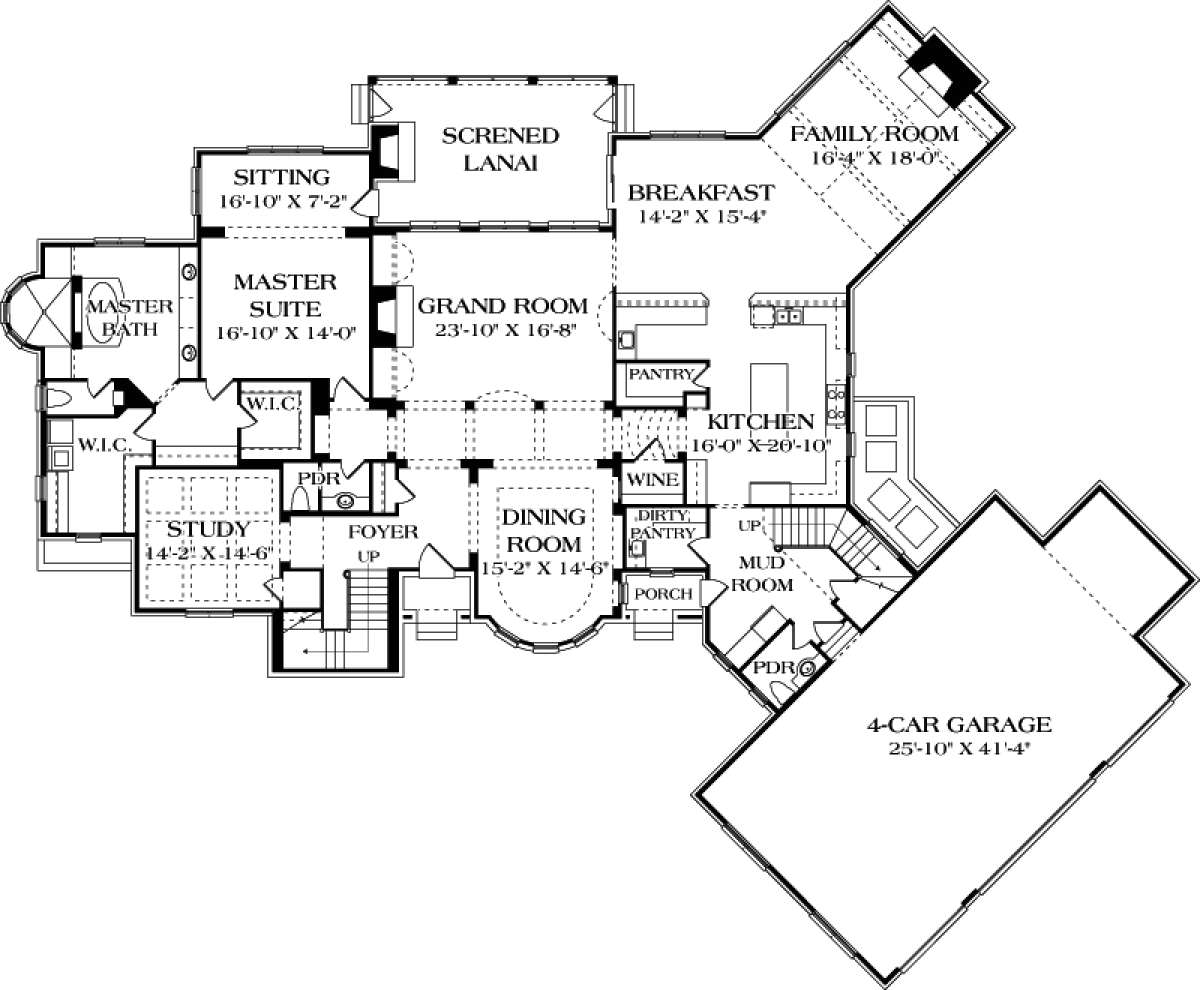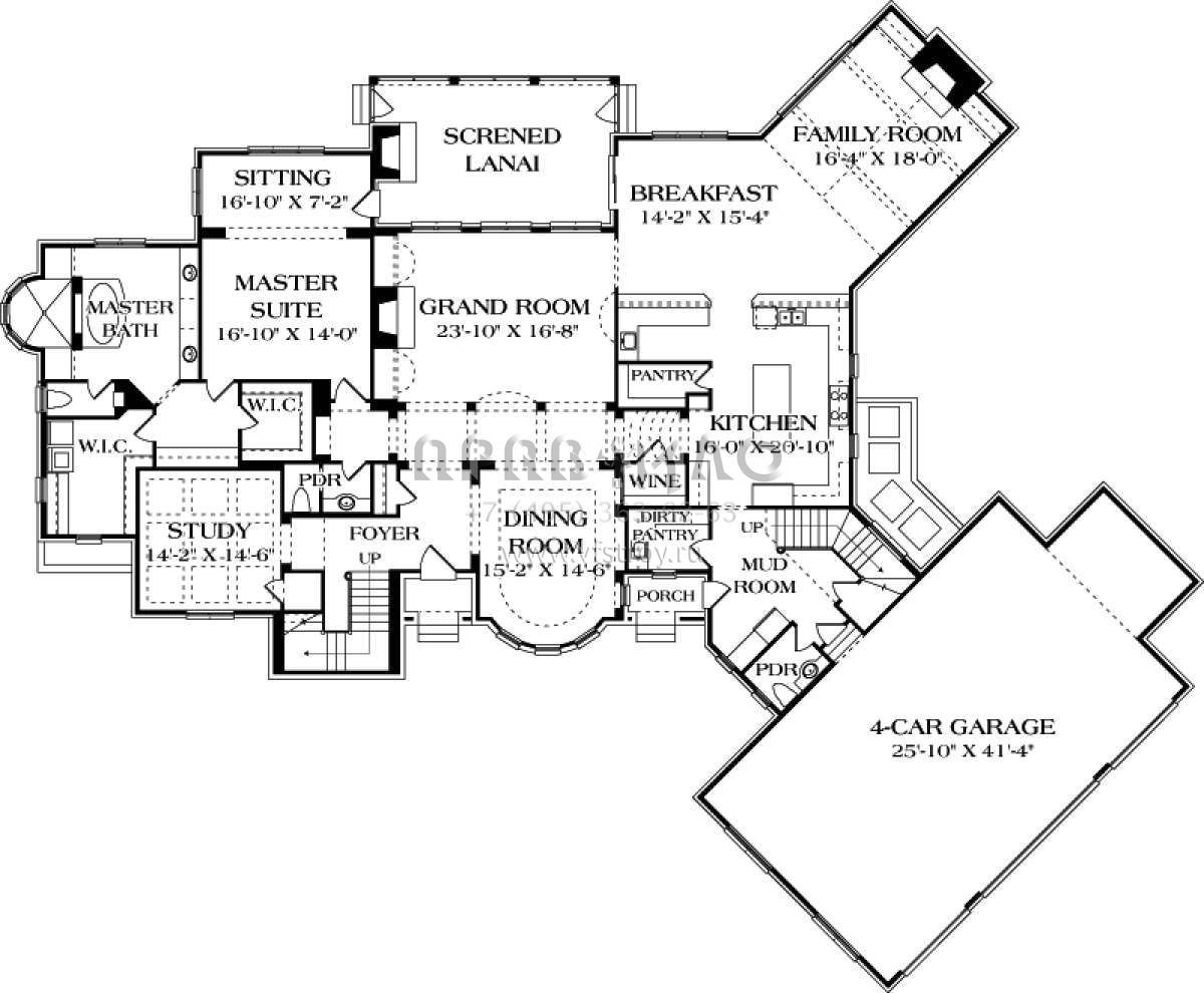 Проект трехэтажного дома с гаражом на три и более машин в стиле Ранчо S5-601 (3323-00644)