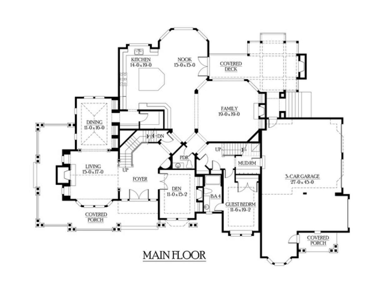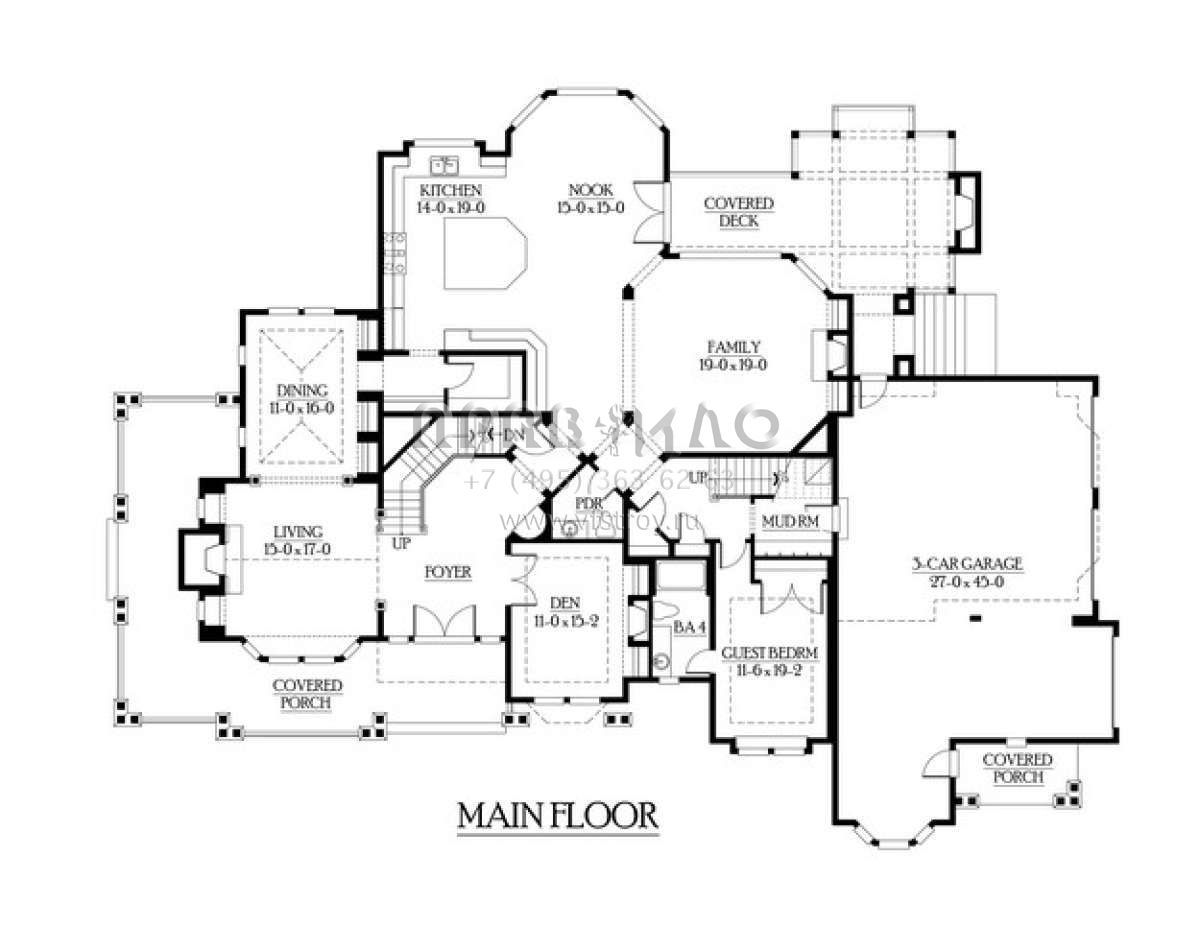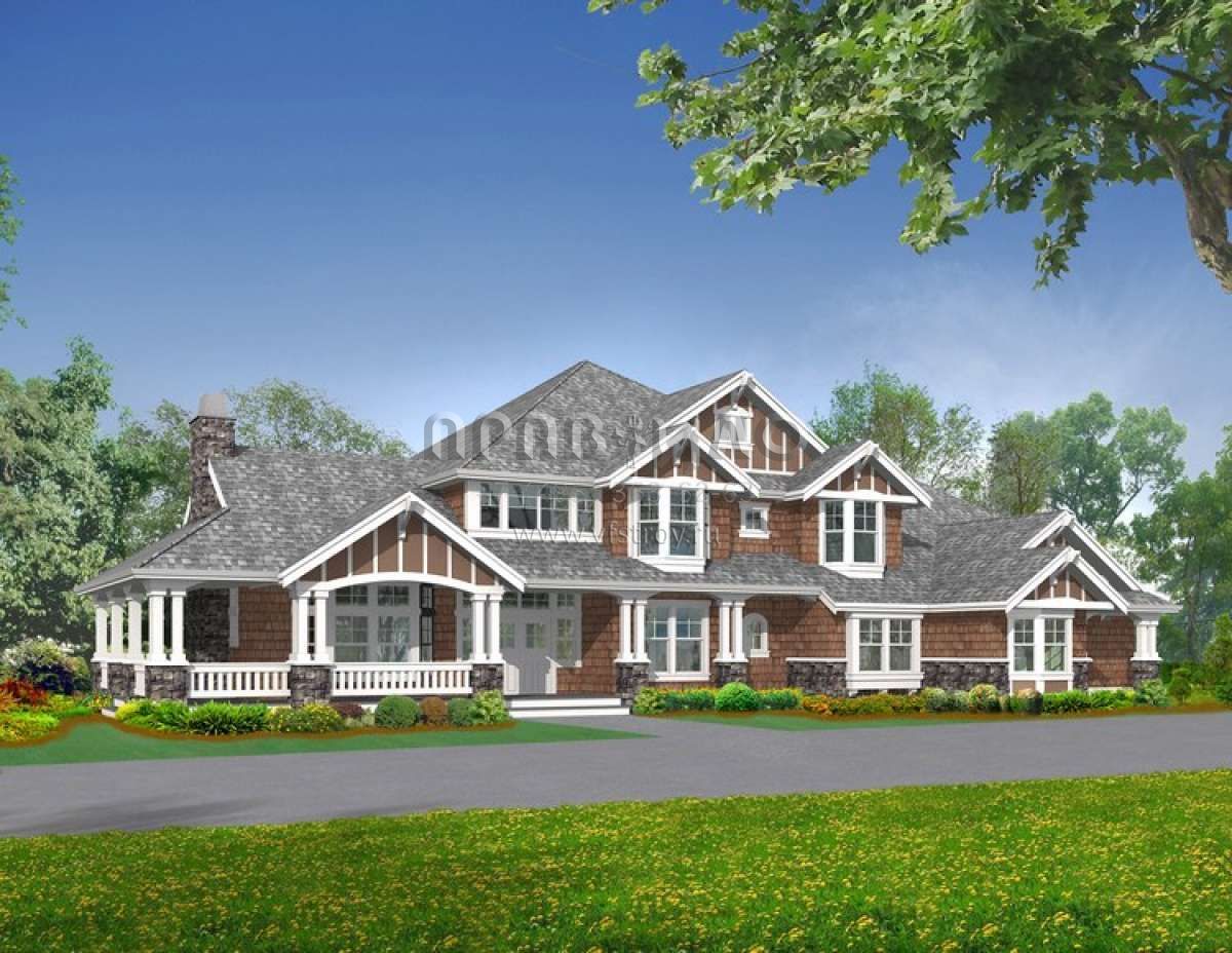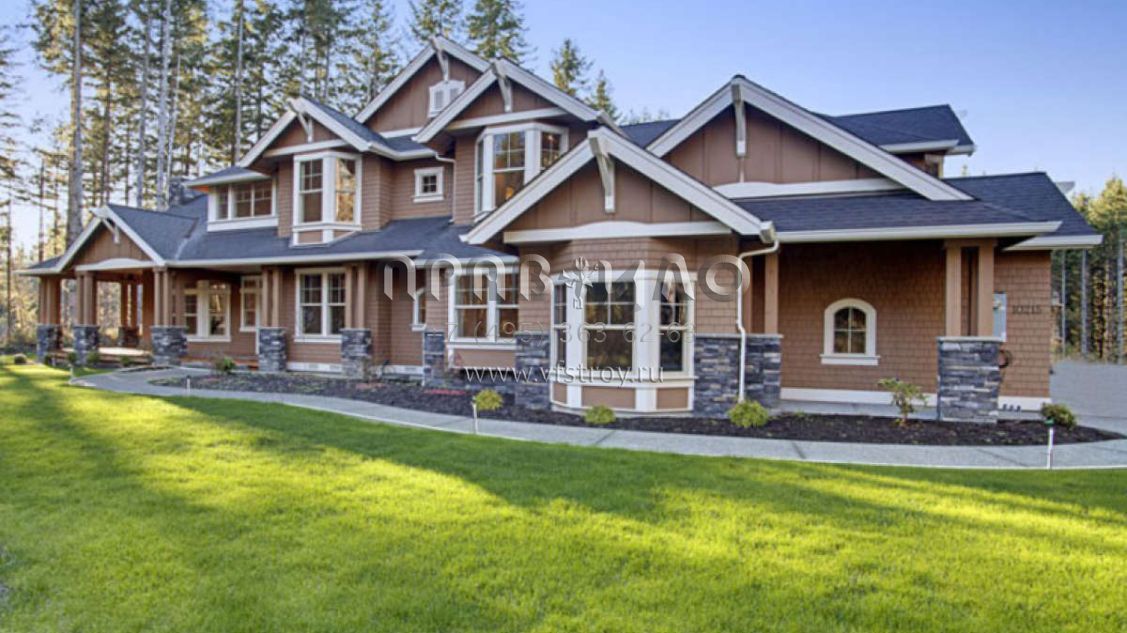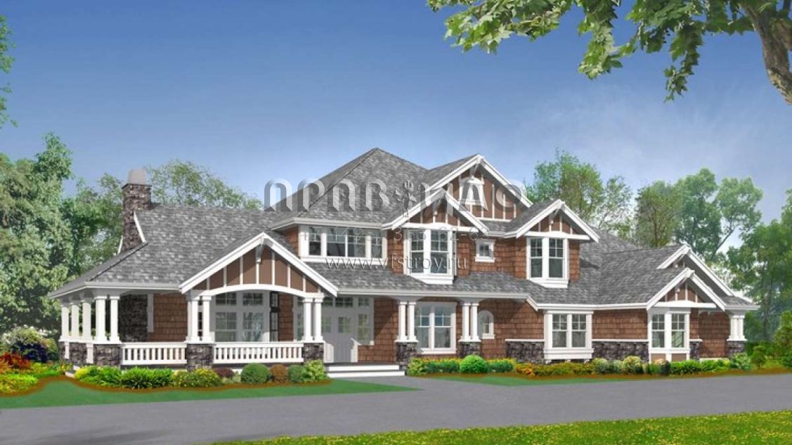 Проект двухэтажного дома с гаражом на три и более машин в стиле Ранчо S5-612 (341-00292)