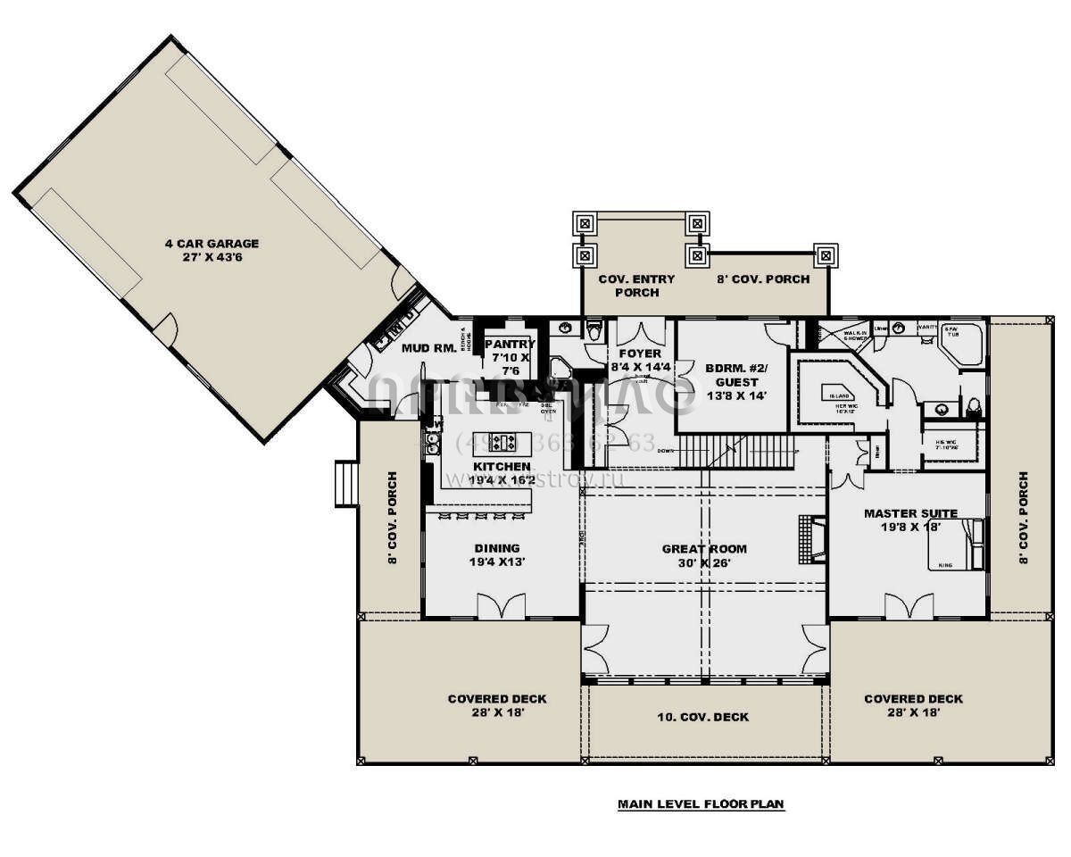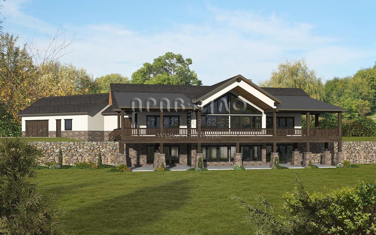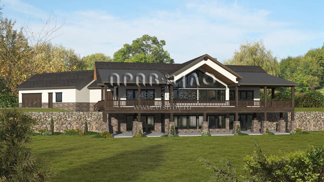Проект двухэтажного дома с гаражом на три и более машин в американском стиле S5-614 (039-00739)