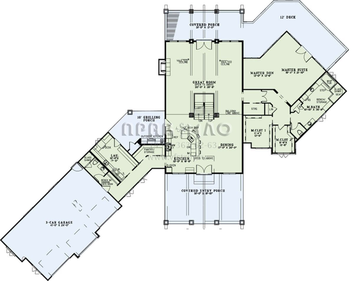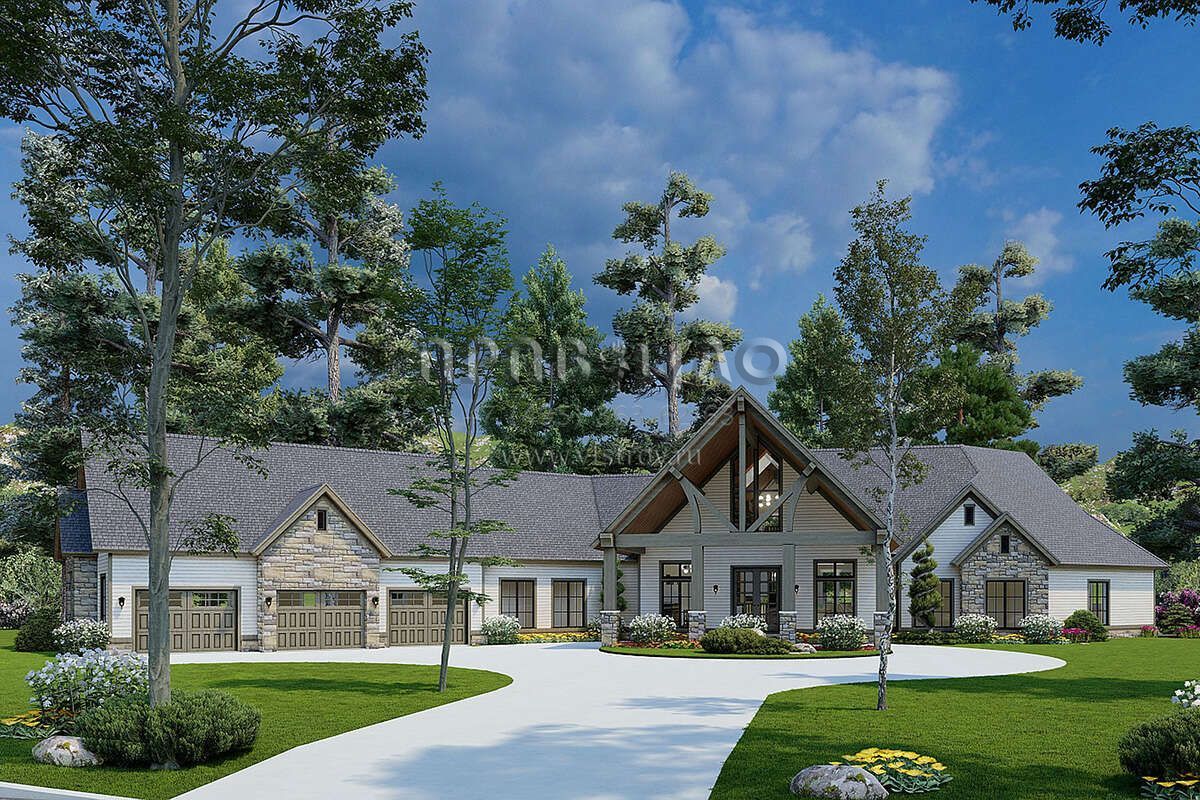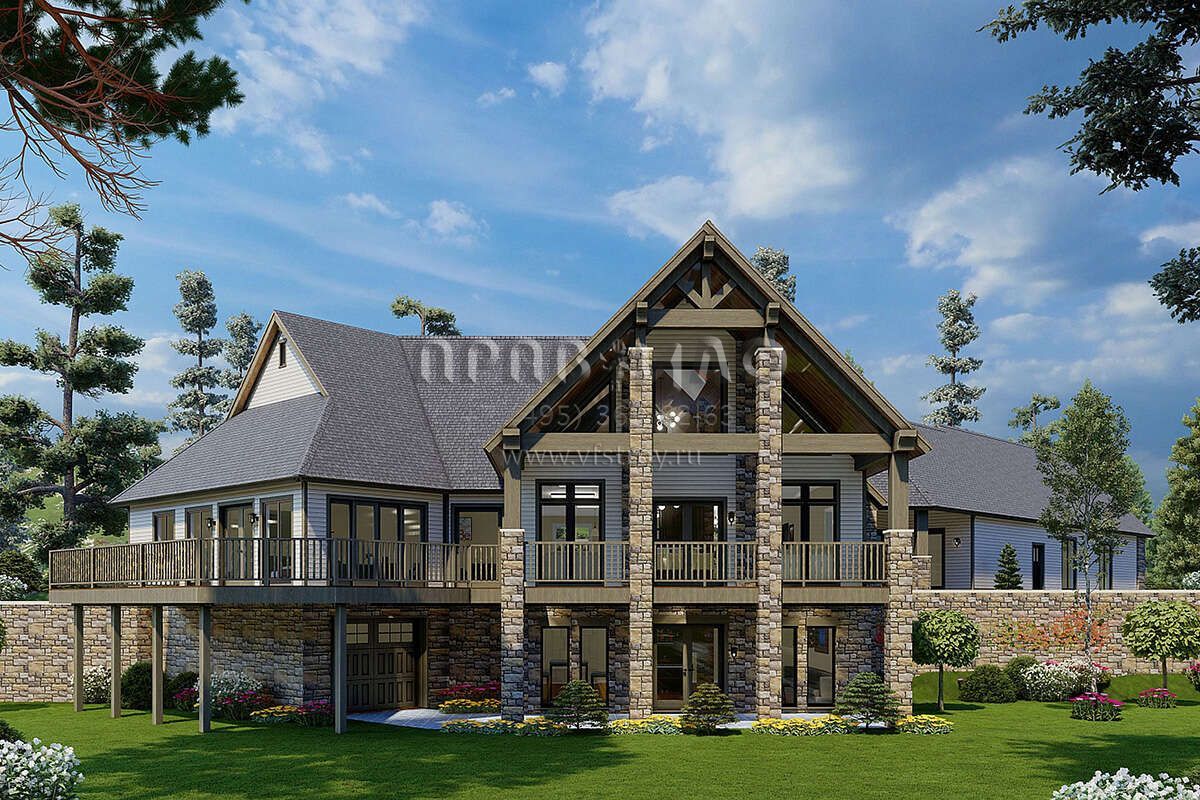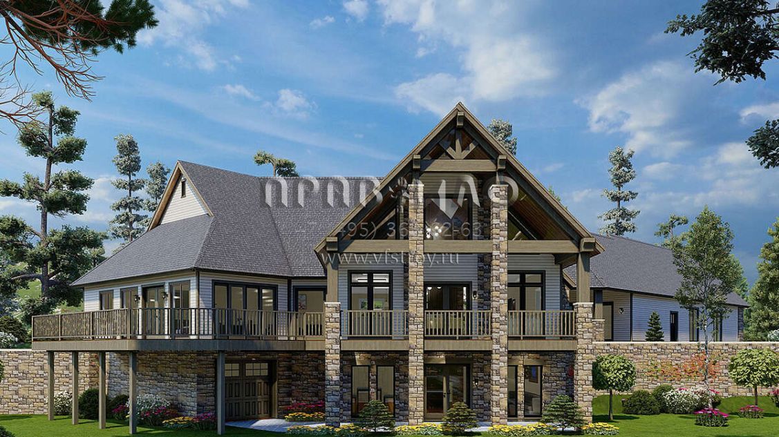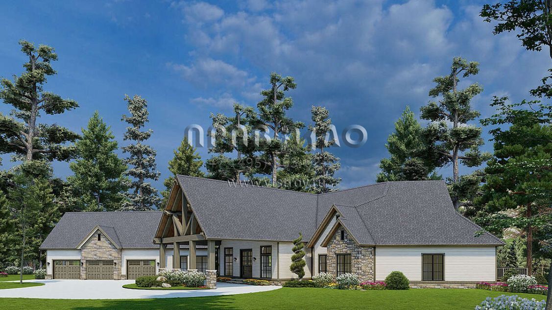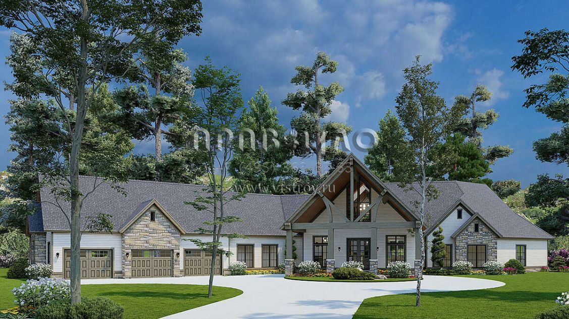 Проект двухэтажного дома с гаражом на три и более машин в американском стиле S5-616 (110-01081)