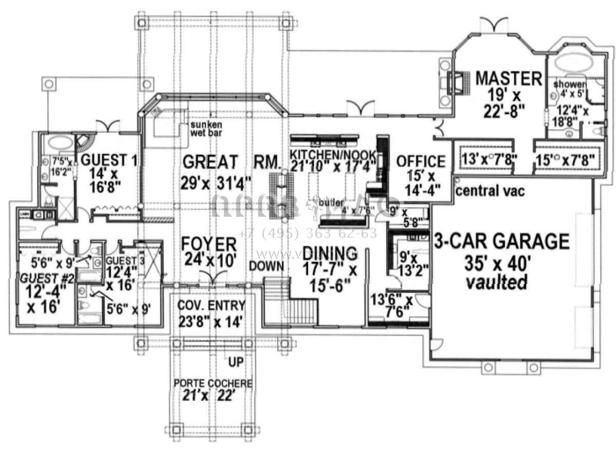 Проект одноэтажного дома с гаражом на три и более машин в современном стиле S5-620 (039-00324)