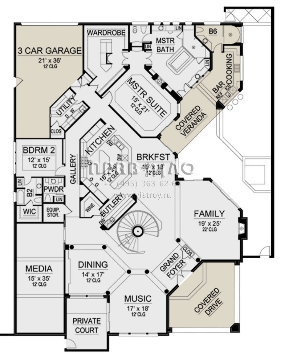 Поскольку этот проект разрабатывался иностранными архитекторами, для строительства дома требуется переработка проекта под действующие в России нормы. Данные визуализации проекта представлены для ознакомления с концепцией проекта. Проект разработан американским архитектурным бюро и представлен America's Best House Plans.