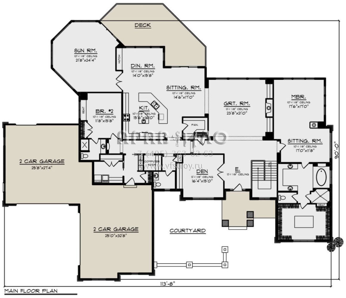Проект одноэтажного дома с гаражом на три и более машин в стиле Ранчо S5-670 (1020-00356)