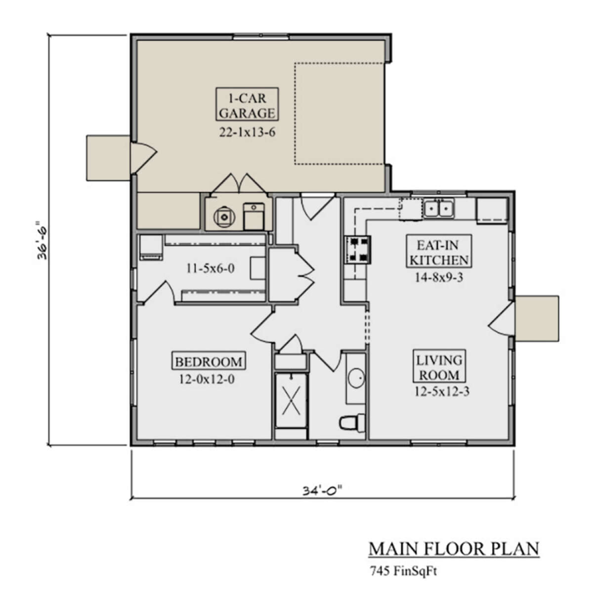 Проект одноэтажного дома с гаражом на одну машину в современном стиле S5-69 (5631-00192)