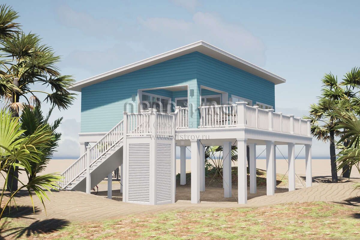 Проект двухэтажного дома с гаражом на три и более машин в прибрежном стиле S5-70 (028-00168)