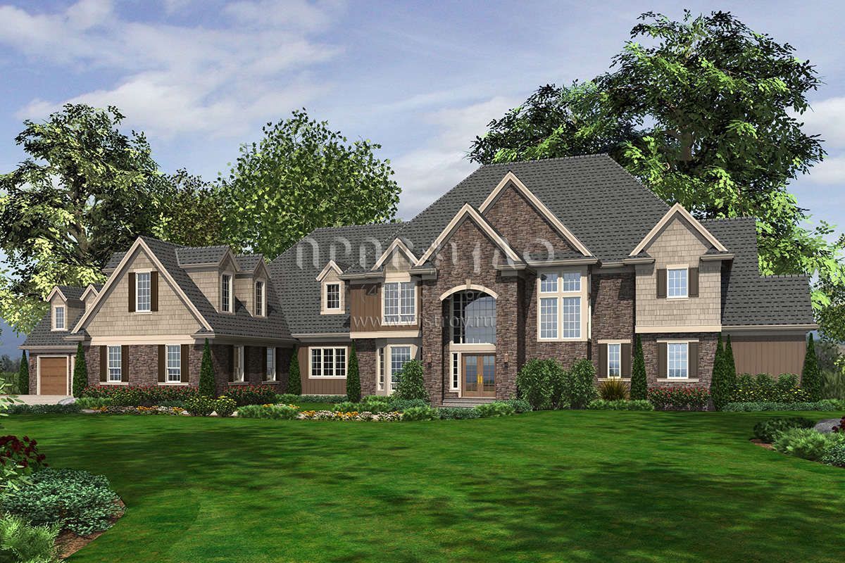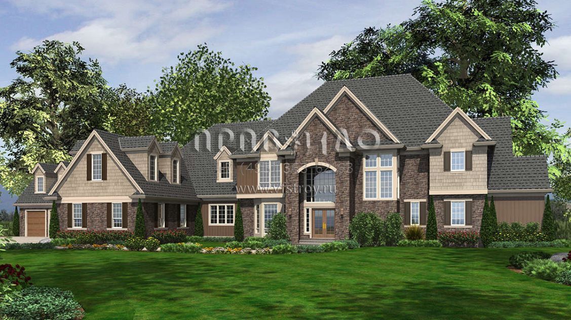 Проект двухэтажного дома с гаражом на три и более машин в английском стиле S5-728 (2559-00610)