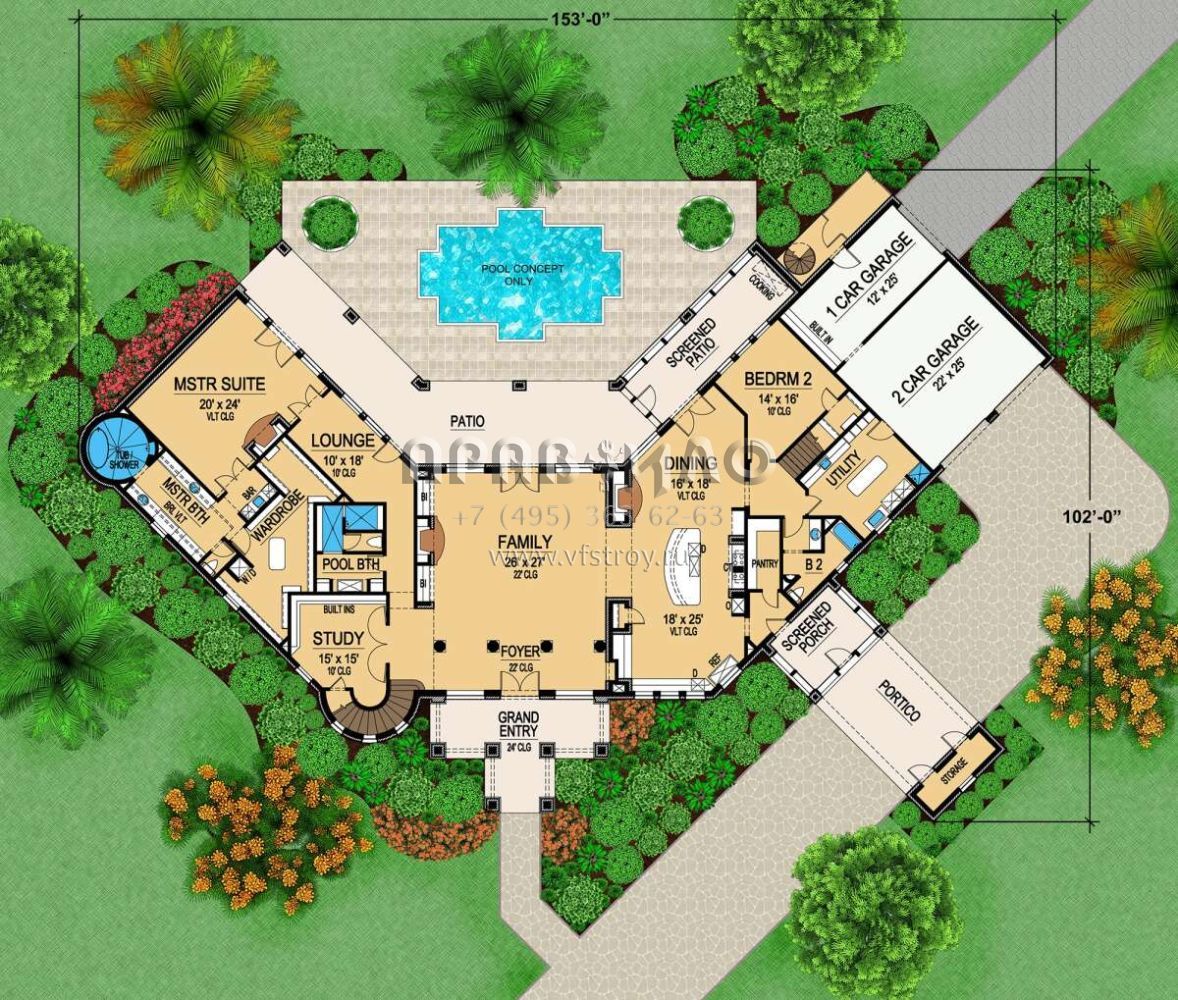 Поскольку этот проект разрабатывался иностранными архитекторами, для строительства дома требуется переработка проекта под действующие в России нормы. Данные визуализации проекта представлены для ознакомления с концепцией проекта. Проект разработан американским архитектурным бюро и представлен America's Best House Plans.