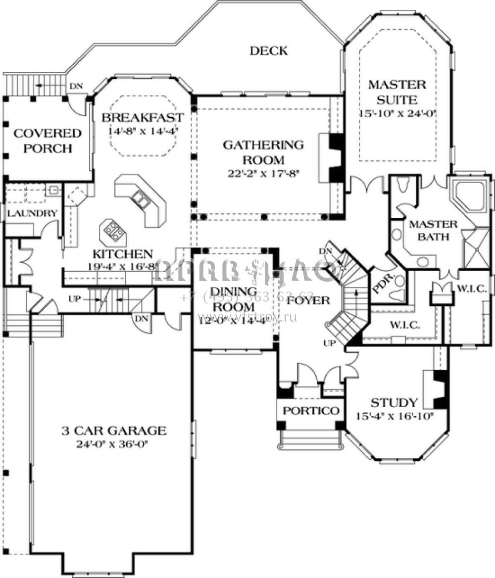 Проект двухэтажного дома с гаражом на три и более машин в стиле Ранчо S5-743 (3323-00525)