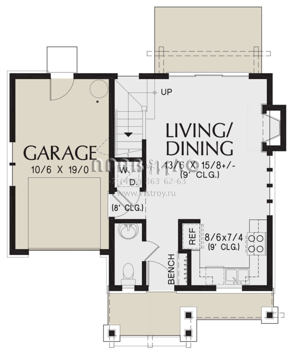 S5-75 (2559-00885) Это иностранный проект, для которого требуется адаптация под нормы, действующие в Российской Федерации. Вы видите проект дома в американском стиле. В этом доме сочетаются черты сельской постройки и аскетичность лофта. Внутри жильцы смогут проводить время с максимальным комфортом. Обратим внимание, что сейчас на планировках все размеры представлены в футах. Для перевода в метры вам необходимо значение в футах умножить на 0,3048.