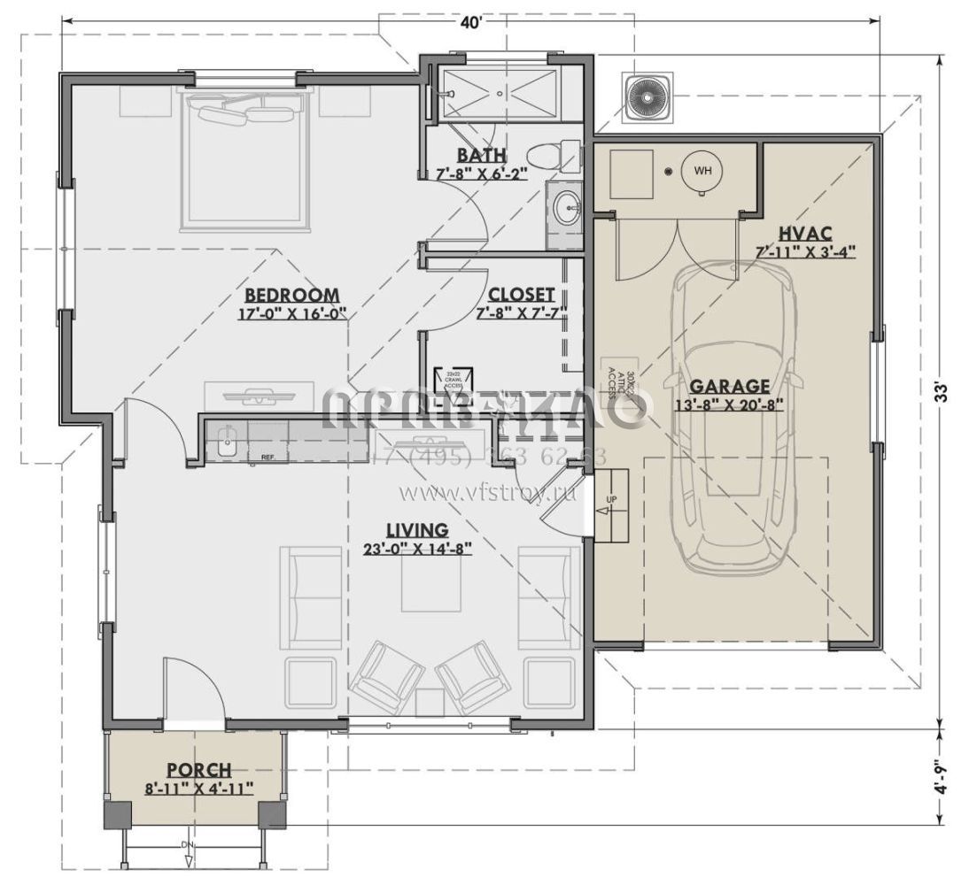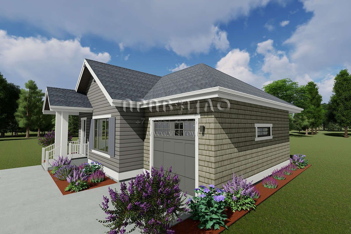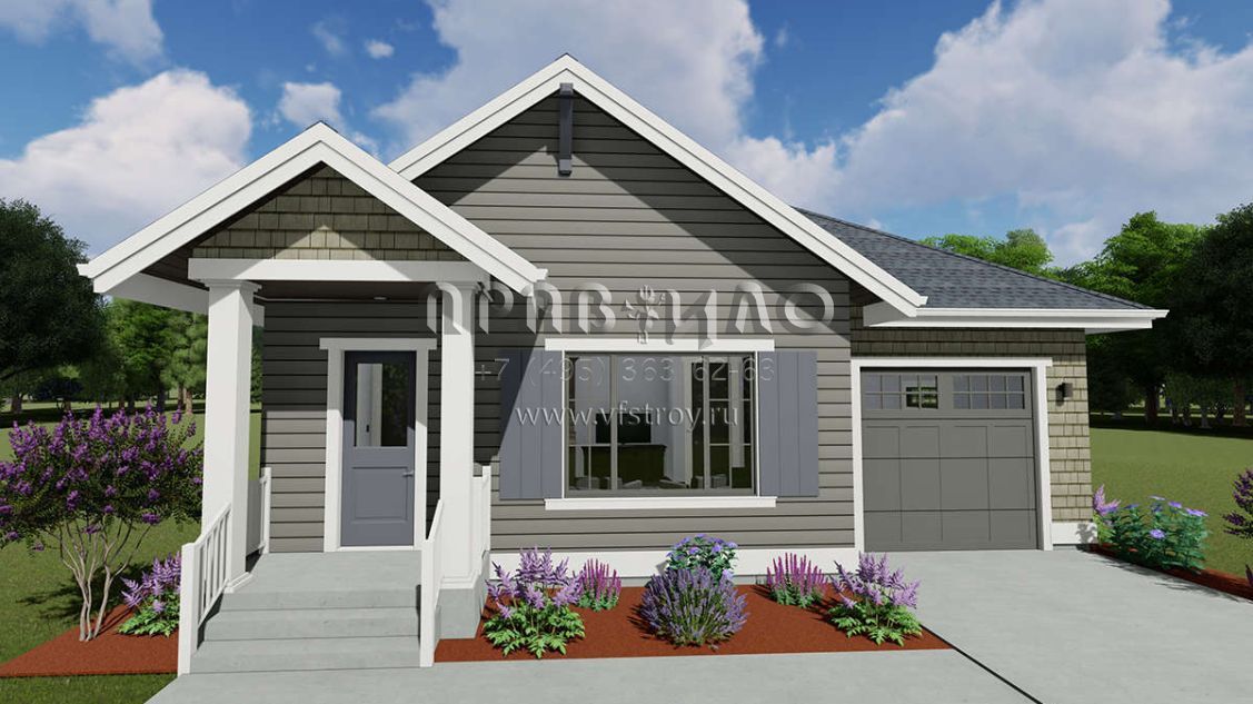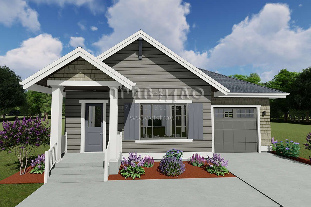 Проект одноэтажного дома с гаражом на одну машину в американском стиле S5-75 (425-00025)