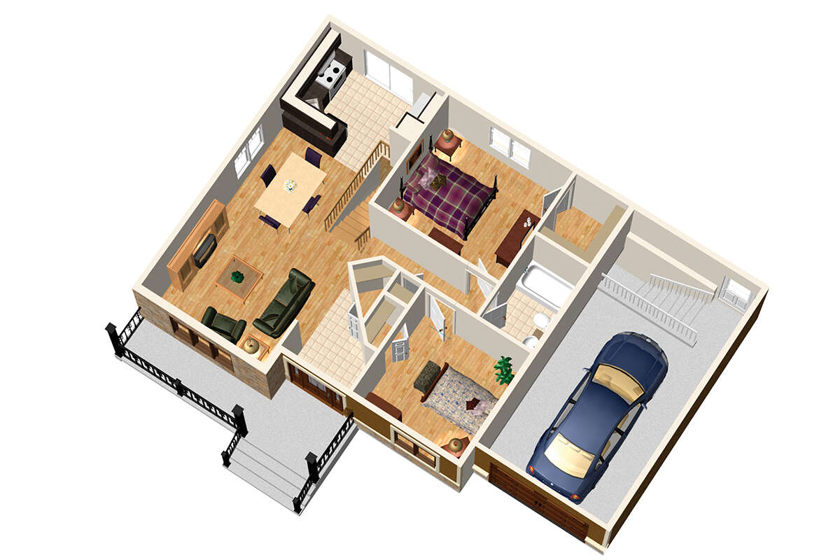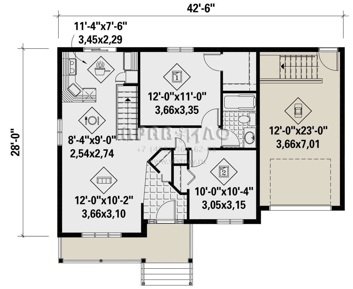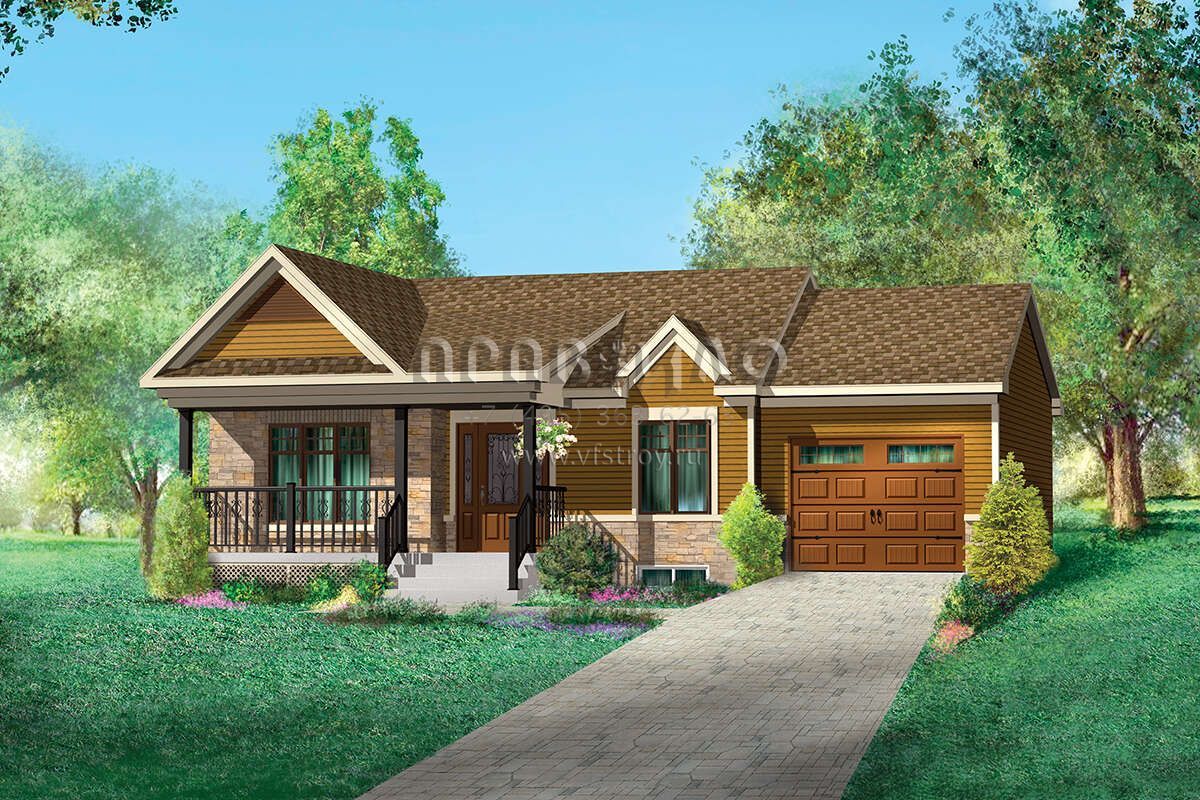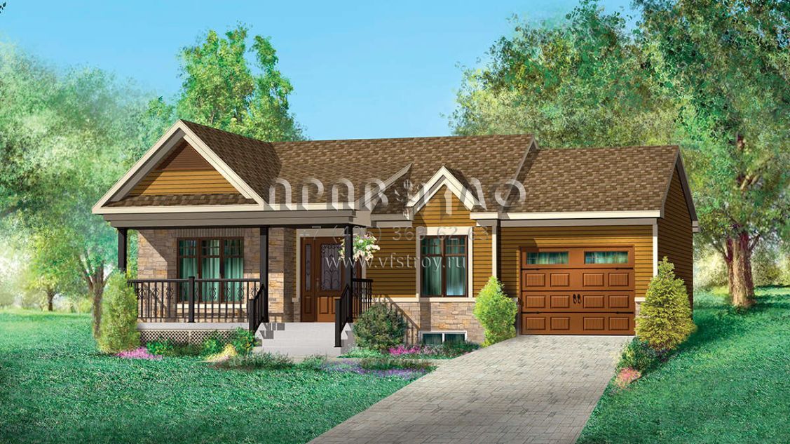 Проект одноэтажного дома с гаражом на одну машину в стиле Ранчо S5-75 (6146-00458)