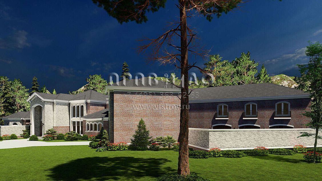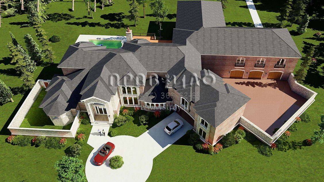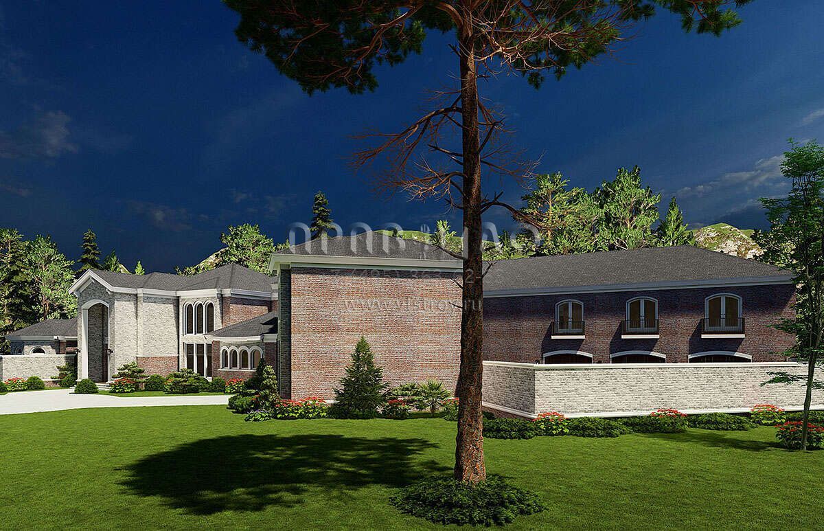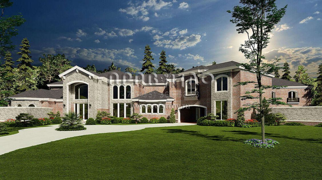 Проект двухэтажного дома с гаражом на три и более машин в английском стиле S5-758 (8318-00038)