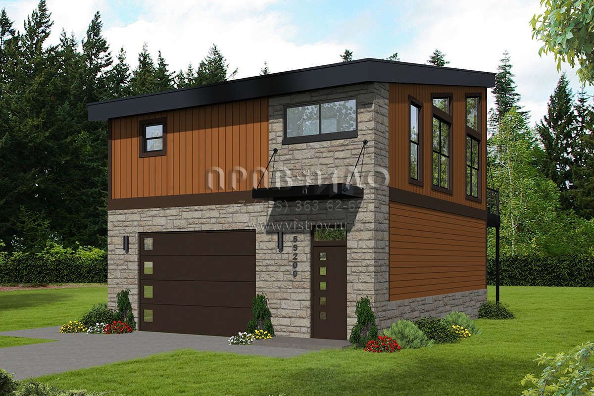 Проект двухэтажного дома с гаражом на одну машину в современном стиле S5-77 (940-00156)