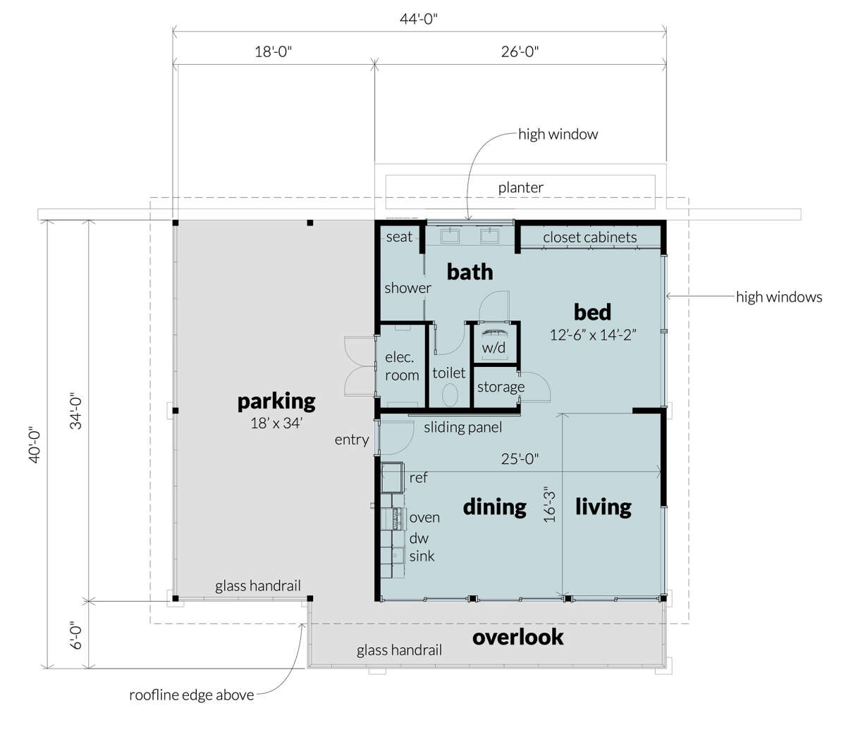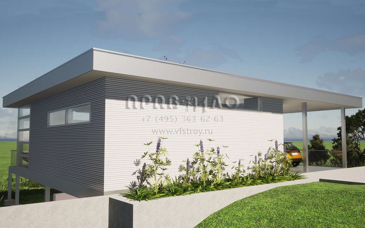 Проект одноэтажного дома с гаражом на одну машину в современном стиле S5-79 (028-00184)