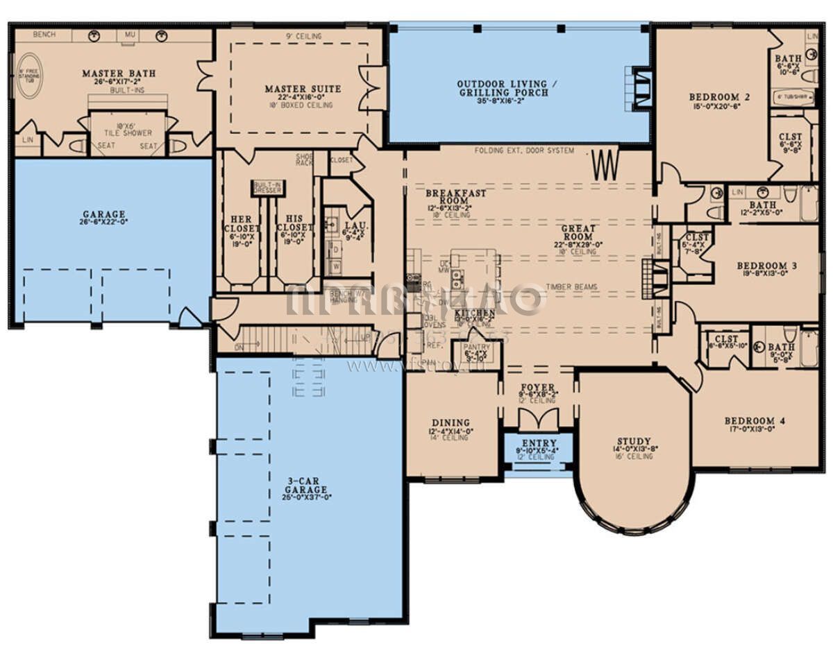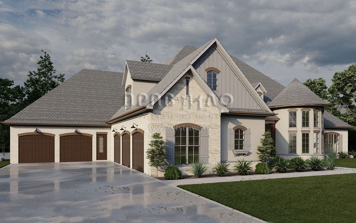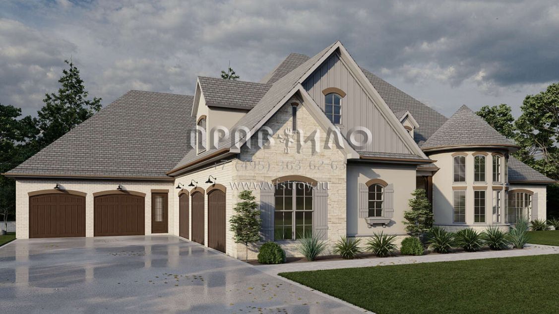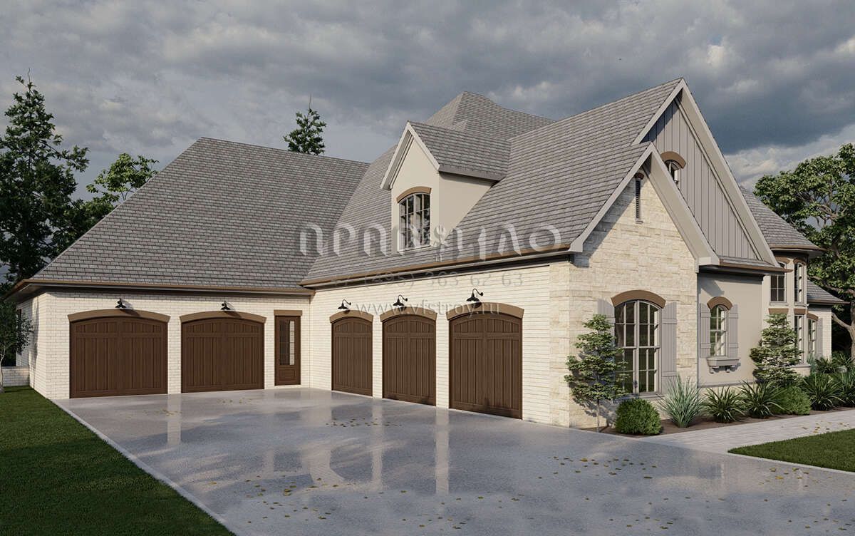 Проект двухэтажного дома с гаражом на три и более машин в английском стиле S5-815 (8318-00305)