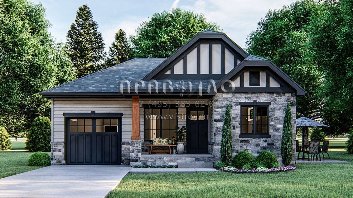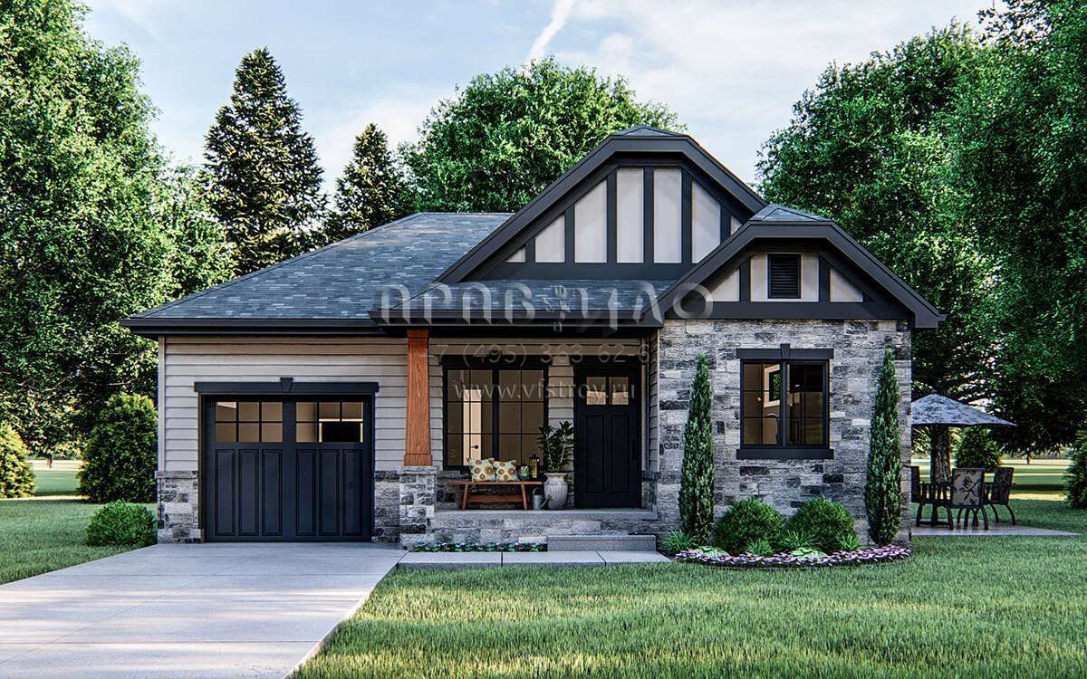 Проект одноэтажного дома с гаражом на одну машину в современном стиле S5-82 (963-00166)