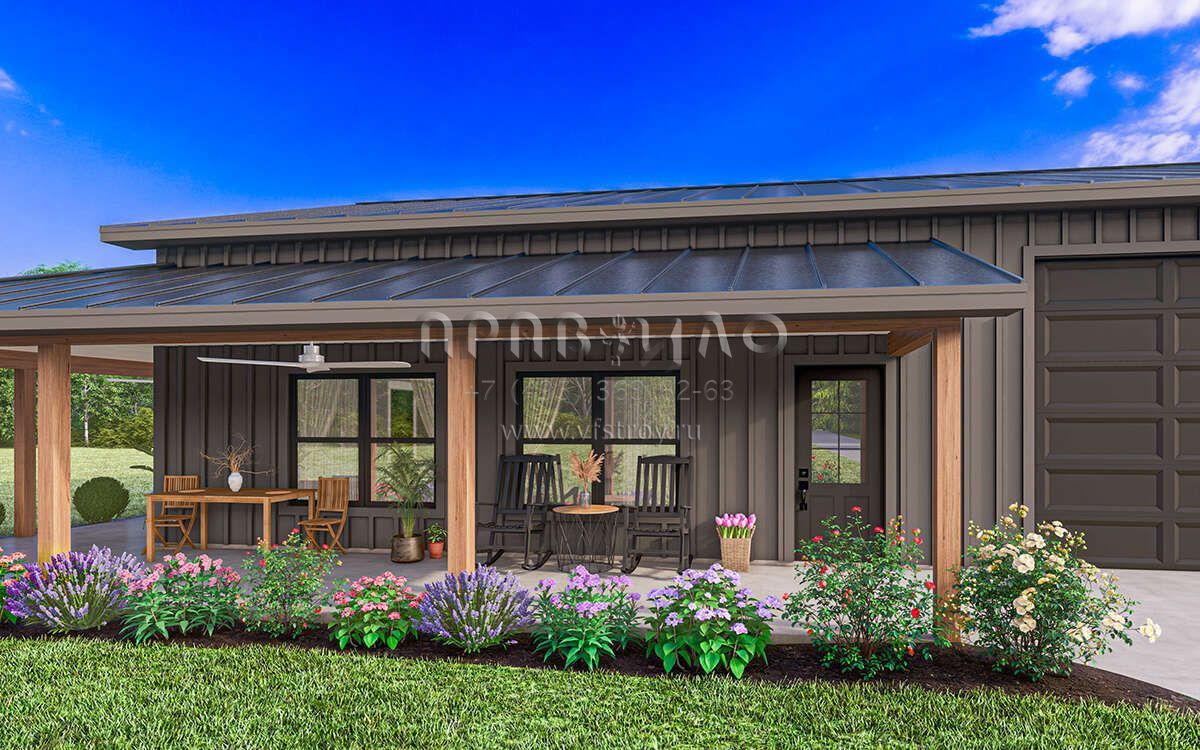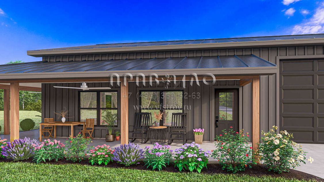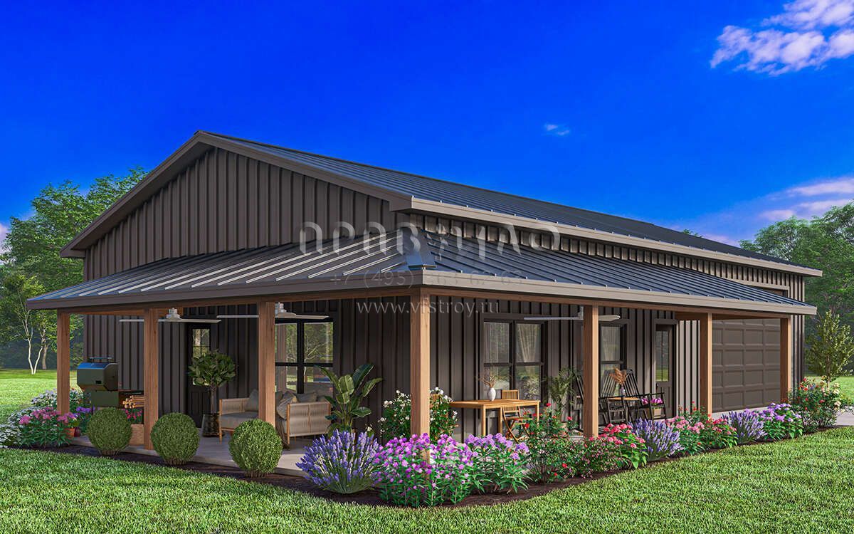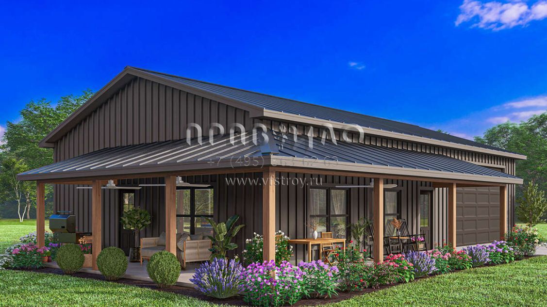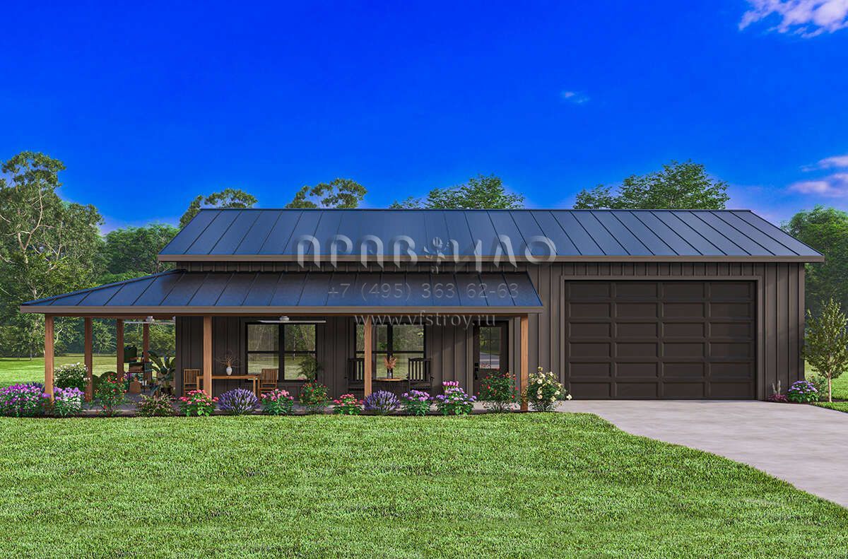 Проект одноэтажного дома с гаражом на две машины в стиле БарнХаус S5-83 (5032-00251)