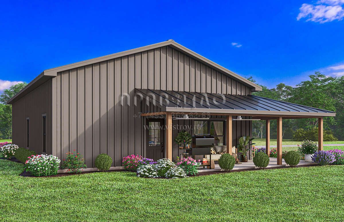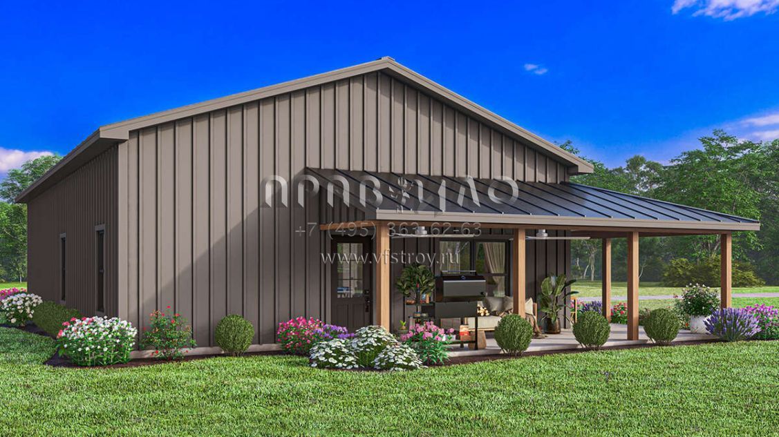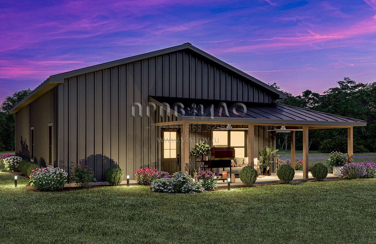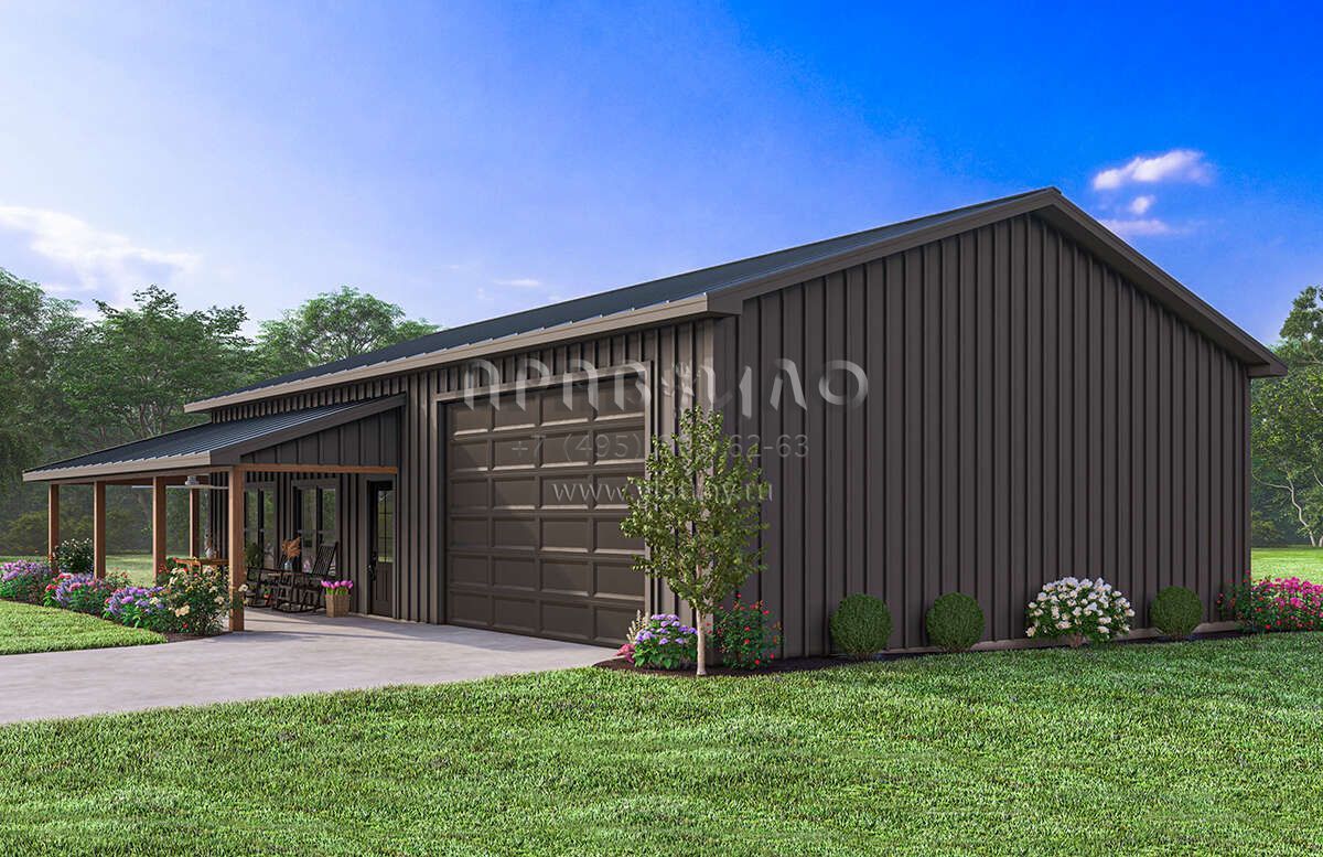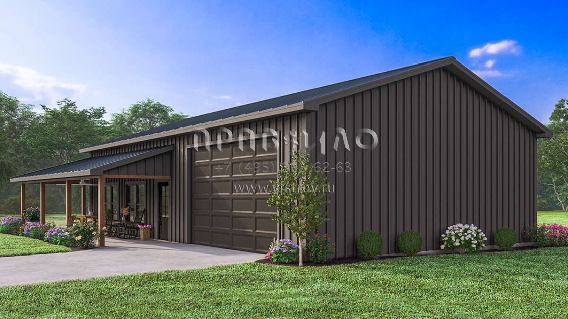 Проект одноэтажного дома с гаражом на две машины в стиле БарнХаус S5-83 (5032-00251)
