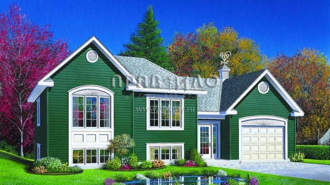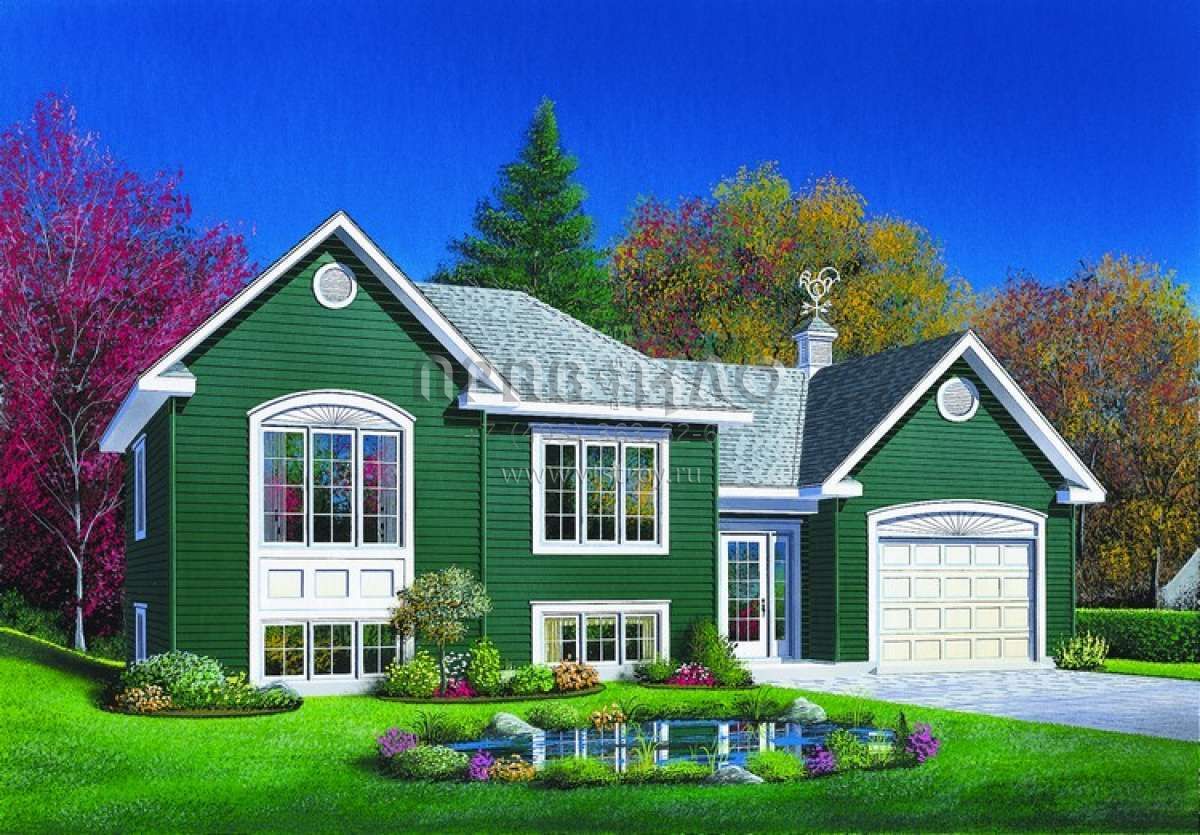Проект одноэтажного дома с гаражом на одну машину в американском стиле S5-84 (034-00355)