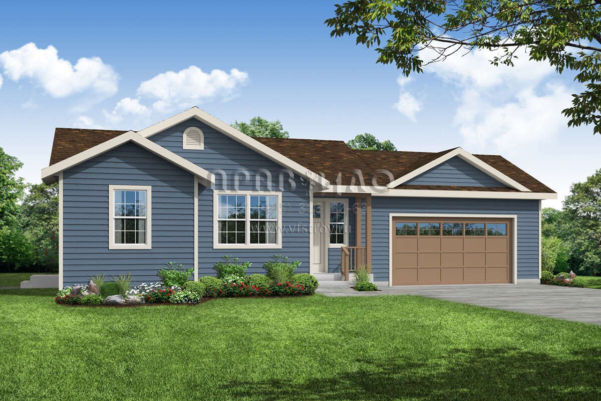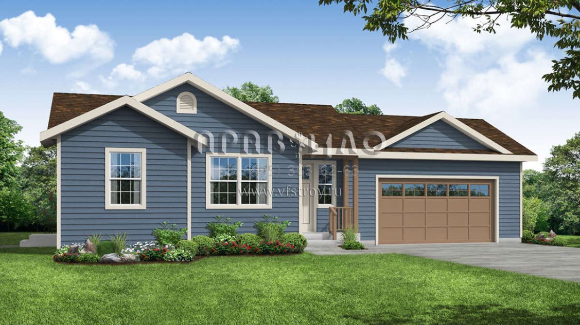 Проект одноэтажного дома с гаражом на две машины в стиле Ранчо S5-84 (035-00888)