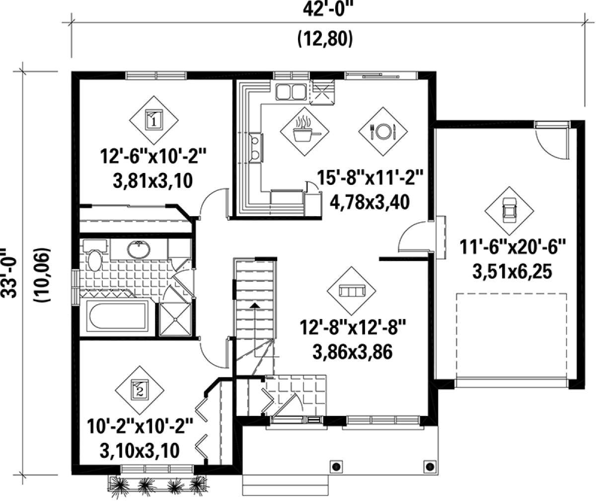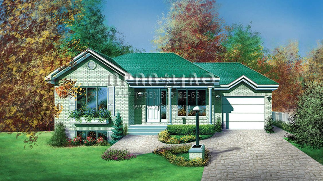 Проект одноэтажного дома с гаражом на одну машину в современном стиле S5-85 (6146-00107)